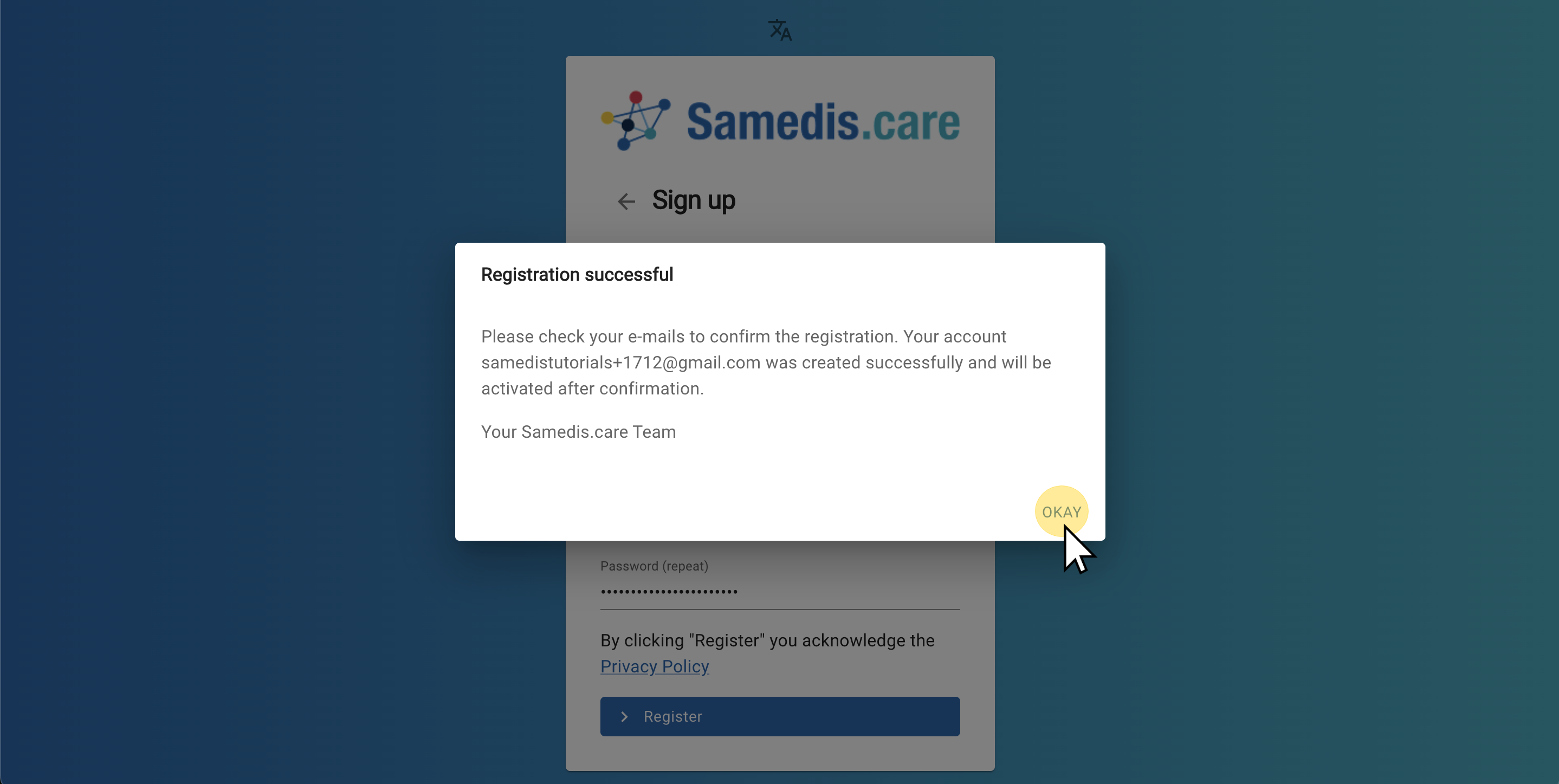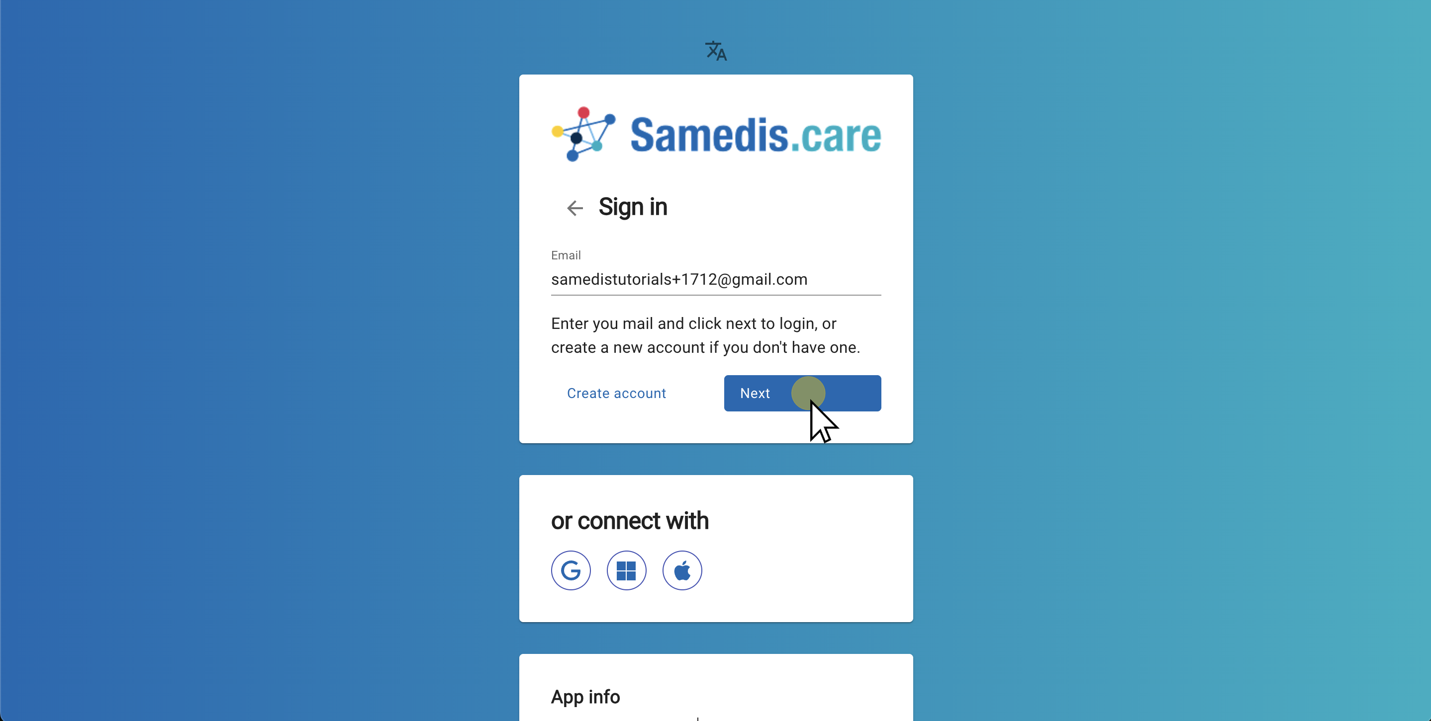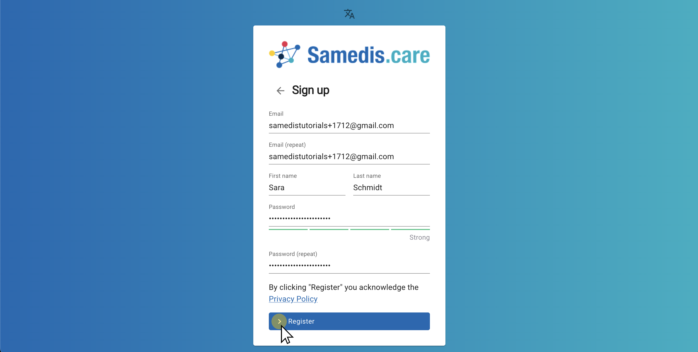 Create a free Samedis.care account in just a few steps to access all the features of Samedis.care.