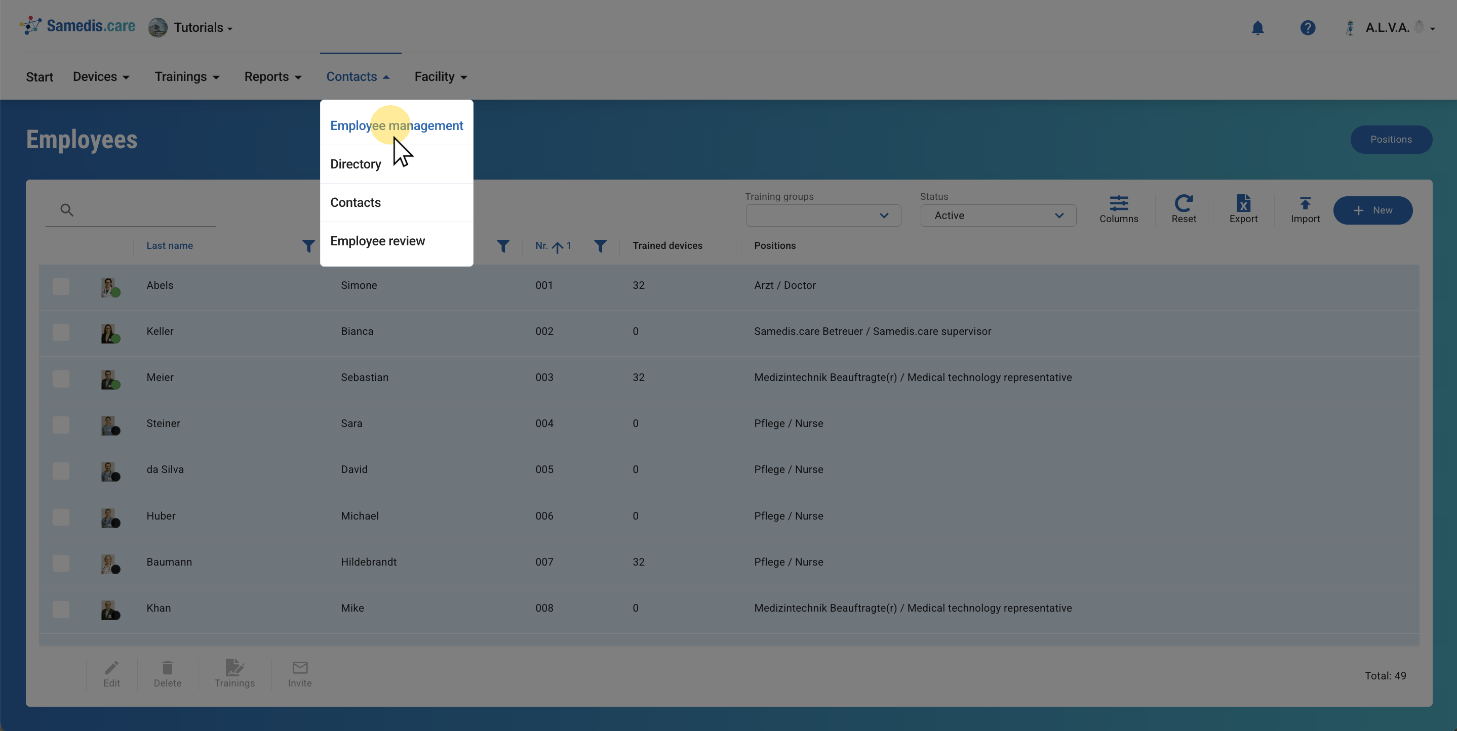 Enter all employees into Samedis.care.