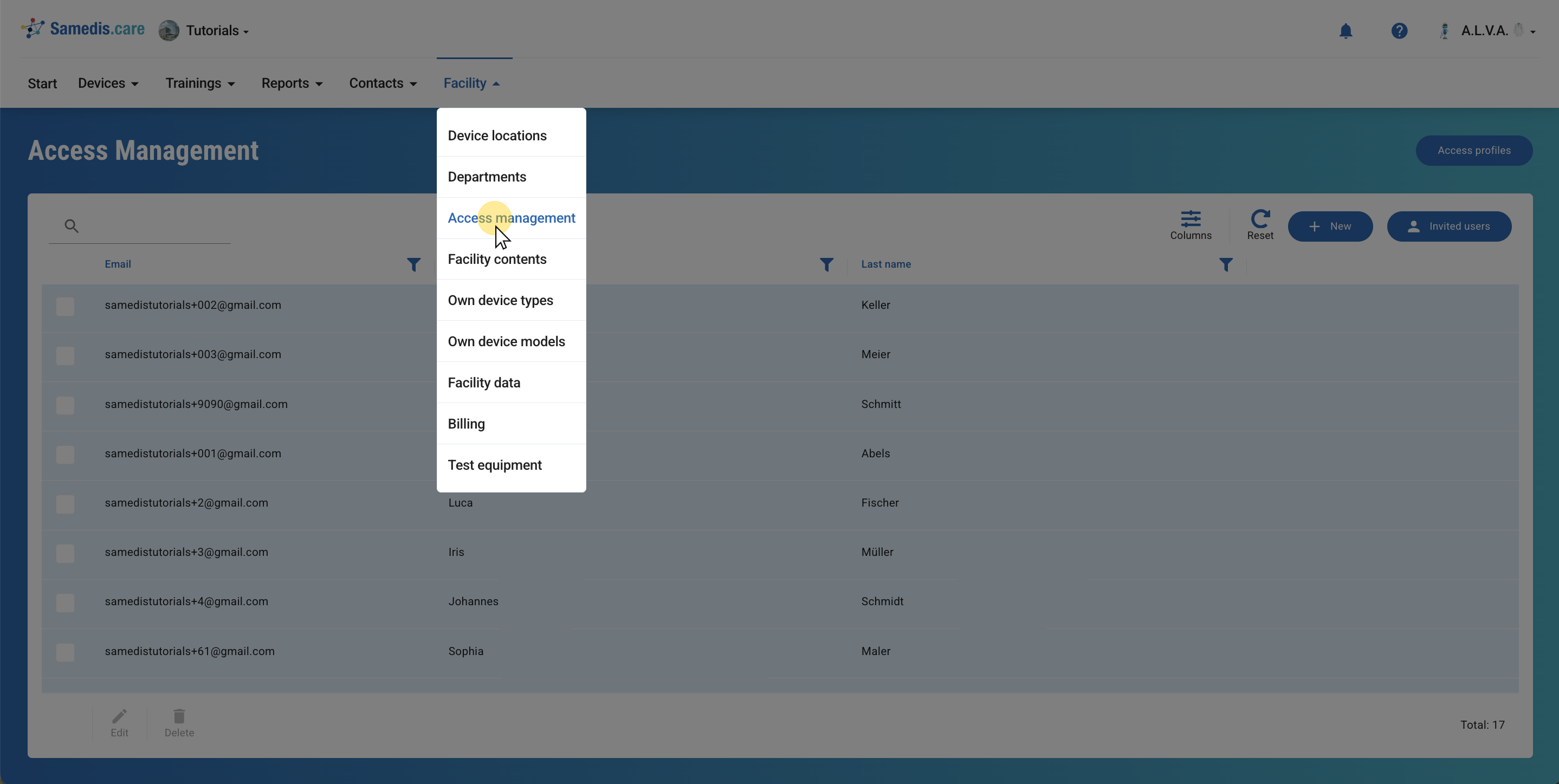 In Samedis.care you can authorize both internal and external individuals (such as device coordinators, station managers, employees, service partners, etc.) to collaborate. Through the Access management, you have the ability to invite employees or contacts directly.