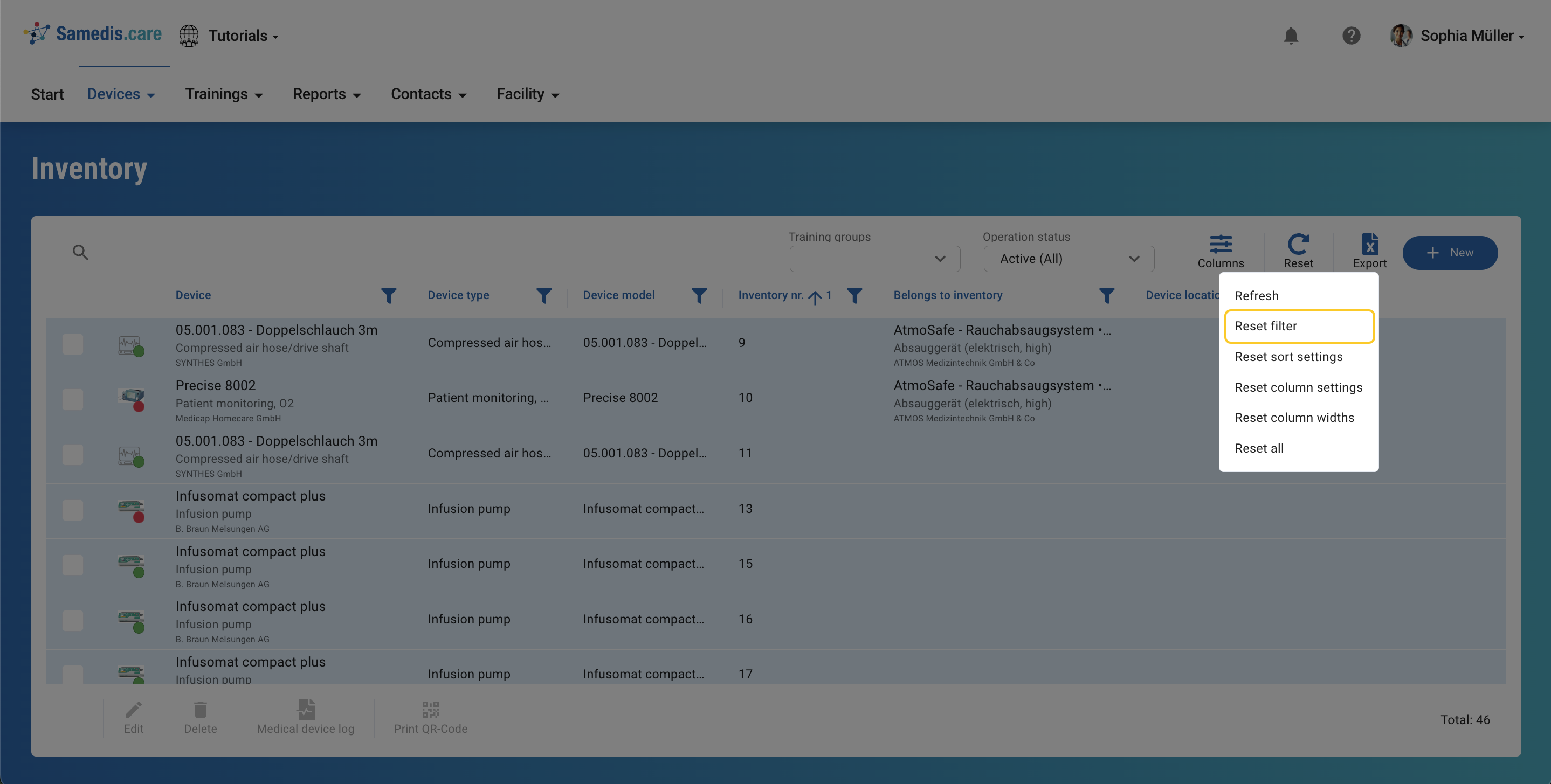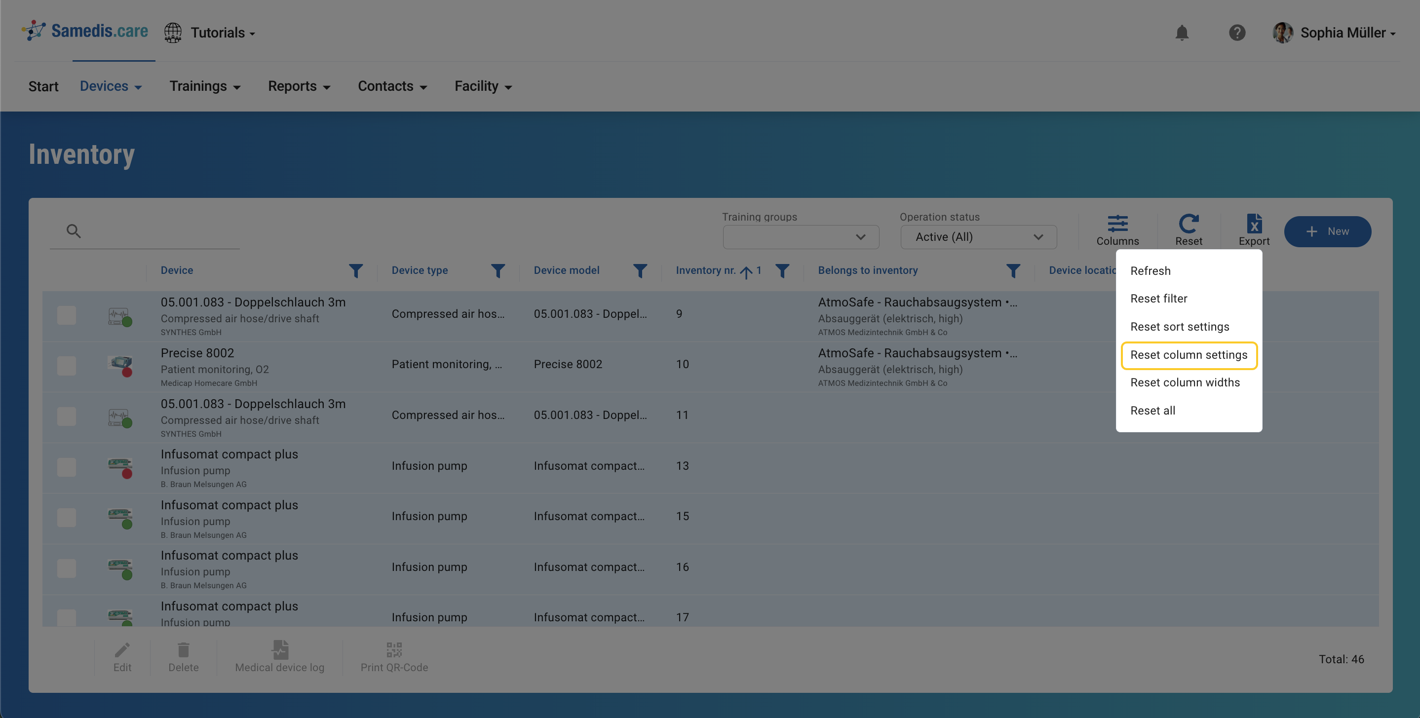 The Reset sort settings option allows you to reset all previous changes to the sorting to their default values.