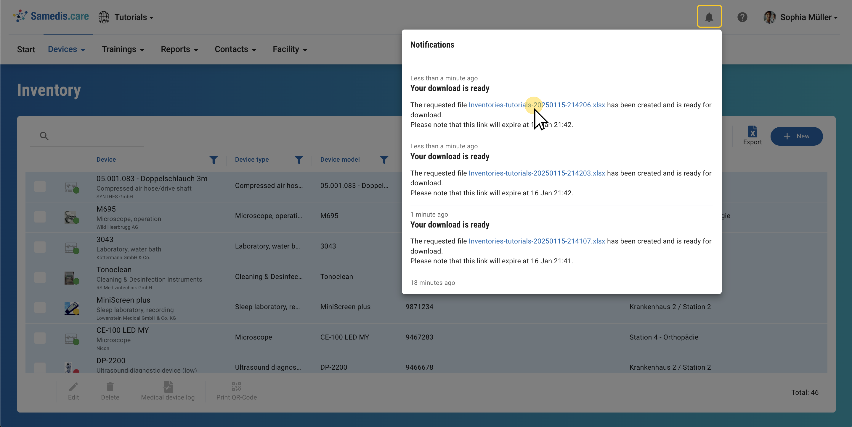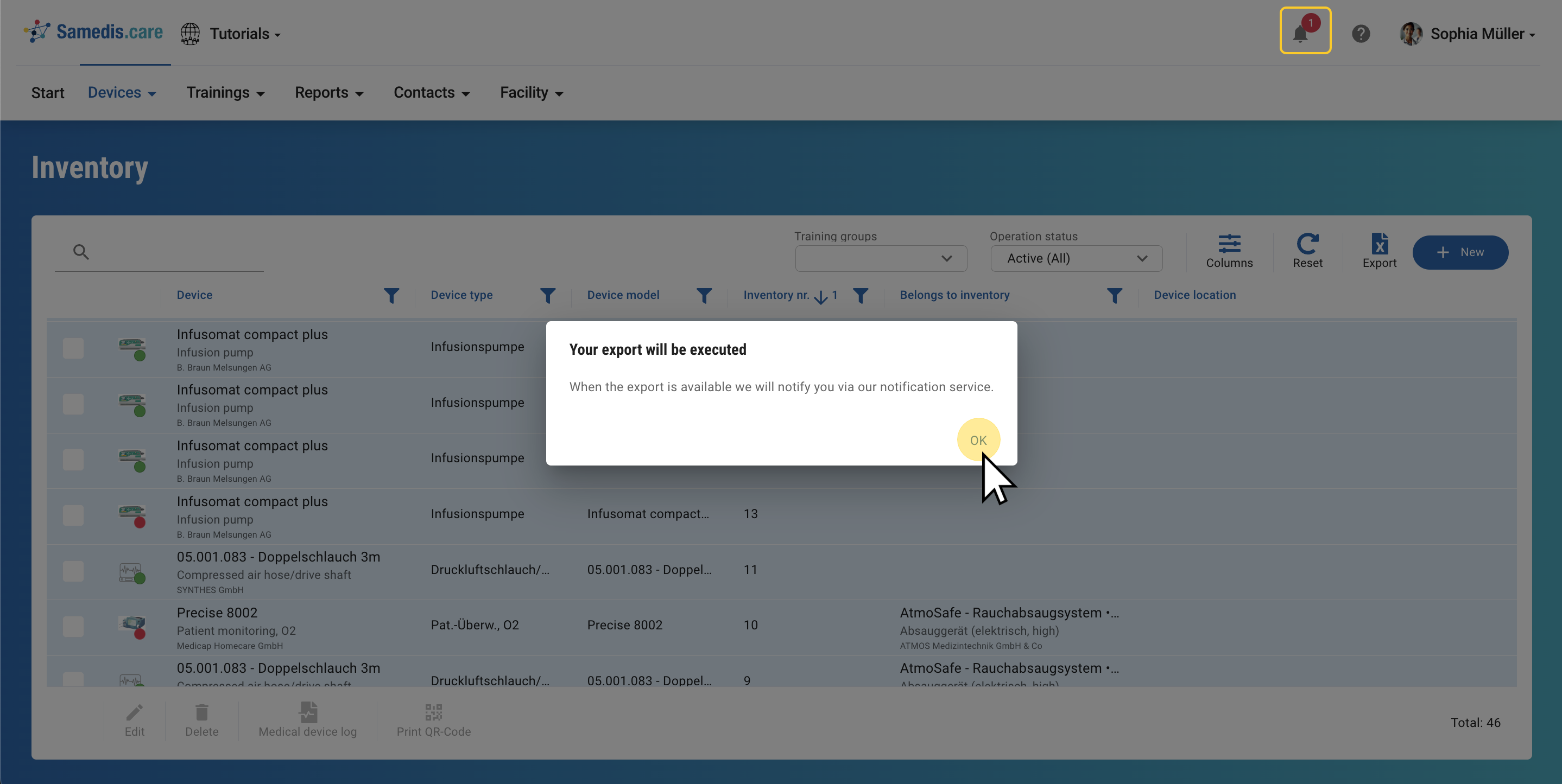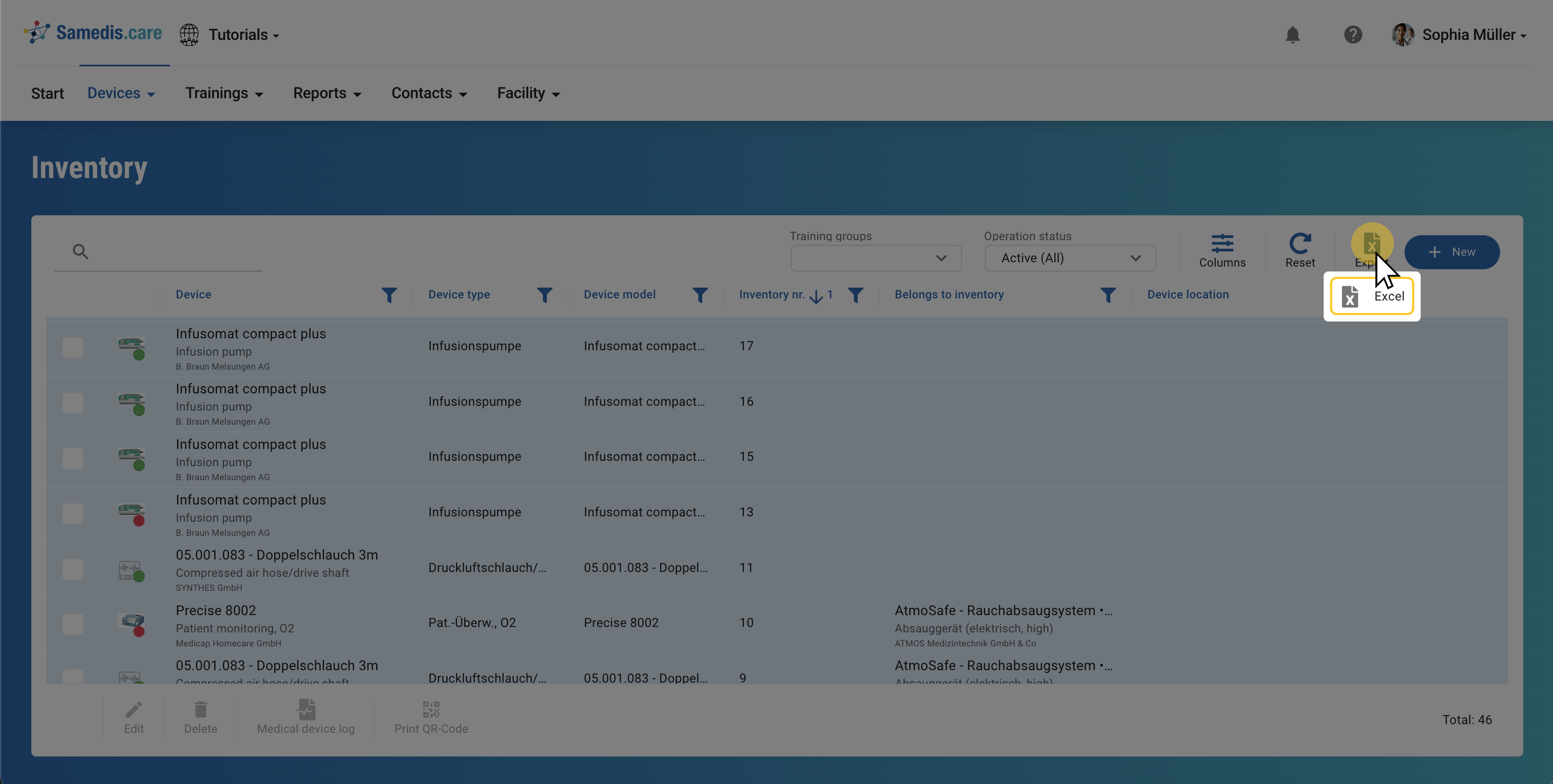 Do you need your data outside of Samedis.care? With the export function you can easily output them in a file.