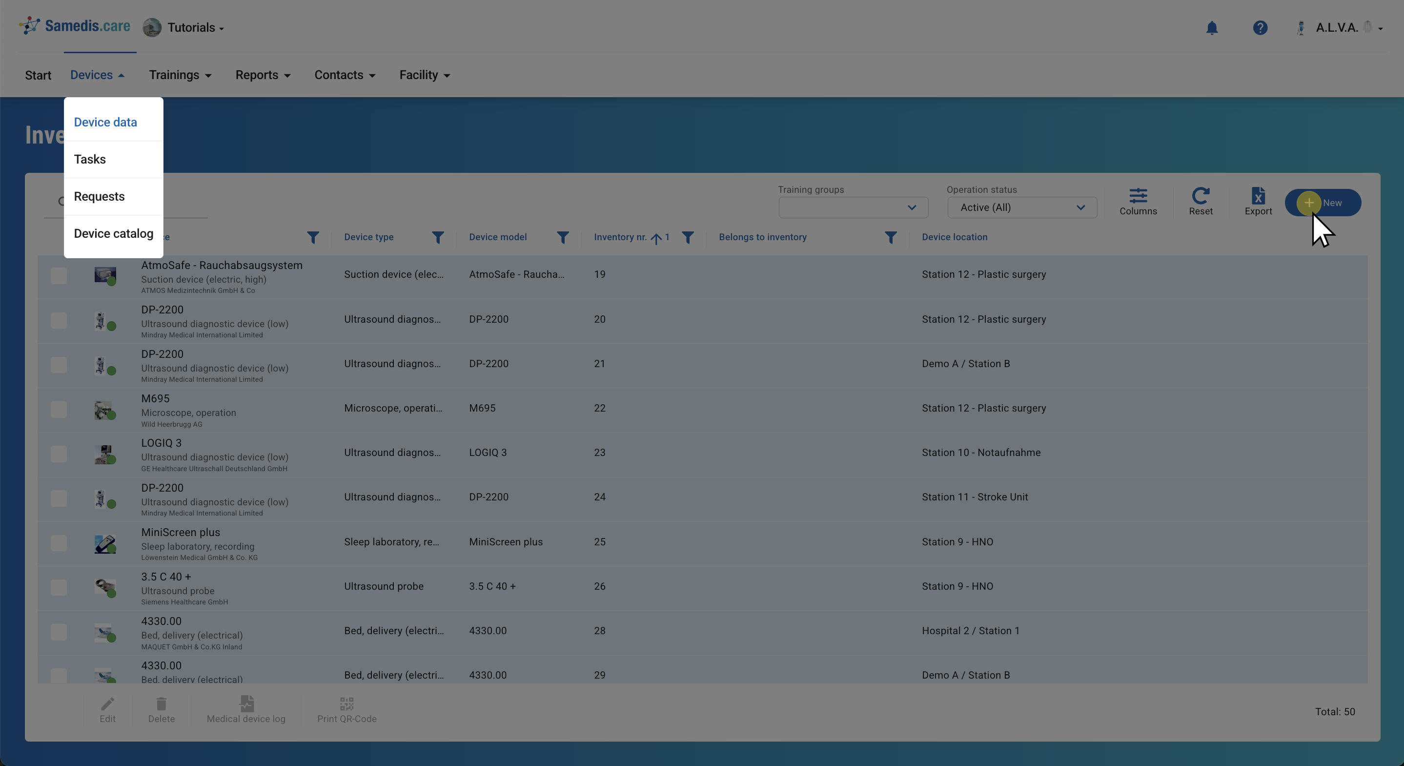 Click on + New to inventory a new device.