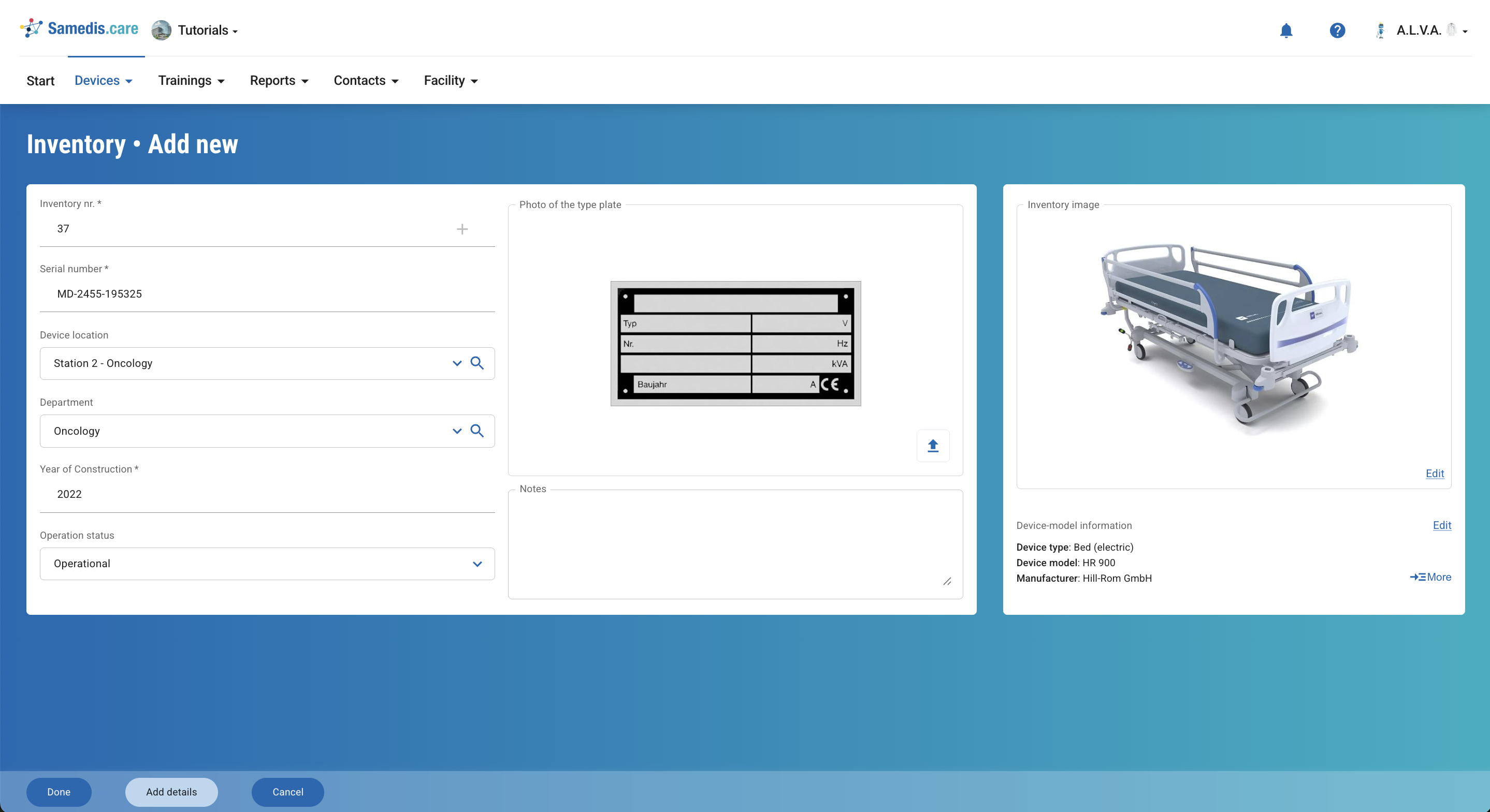 Now enter the basic information of your device by filling in the provided fields. Then click Done.