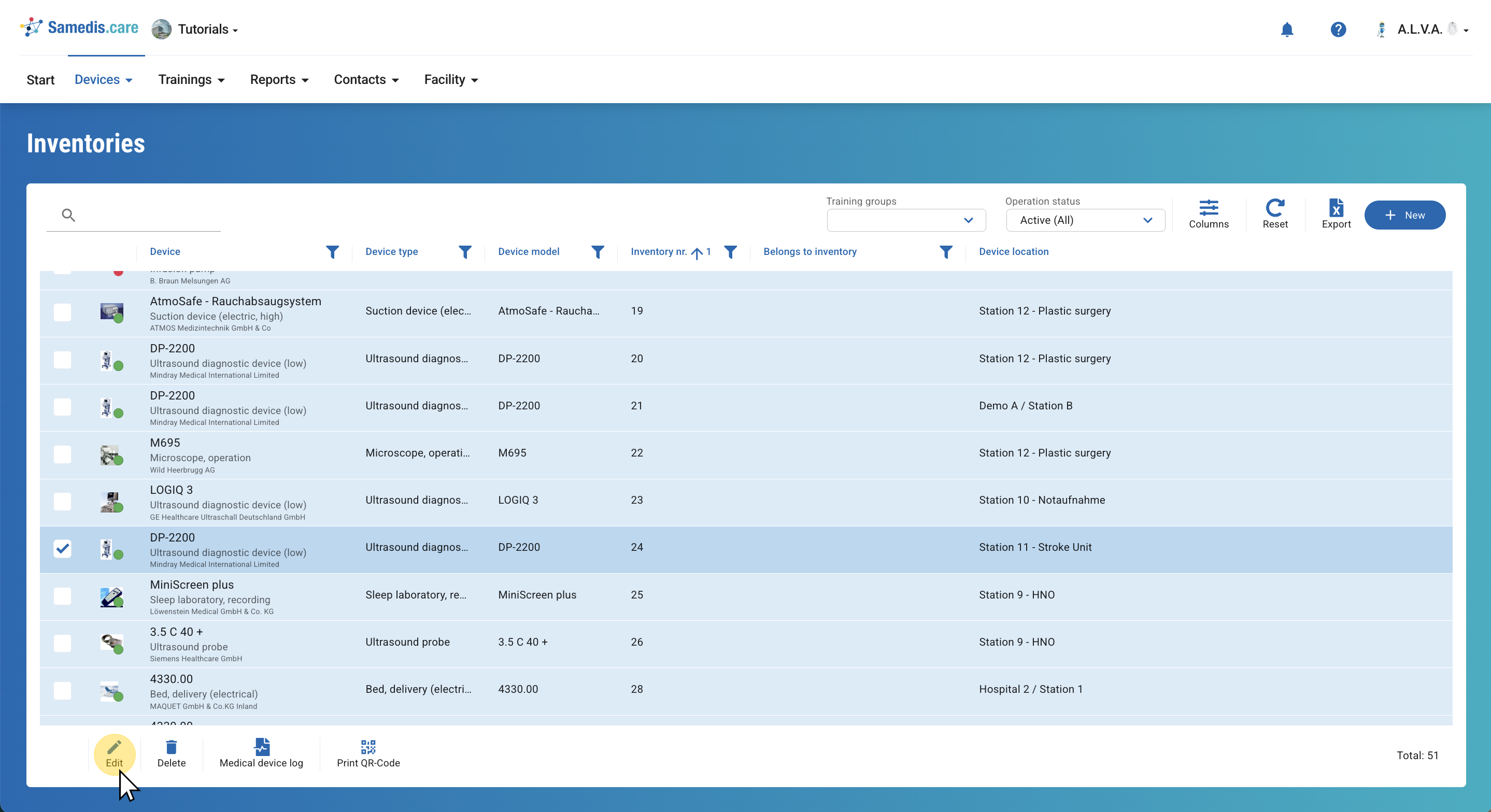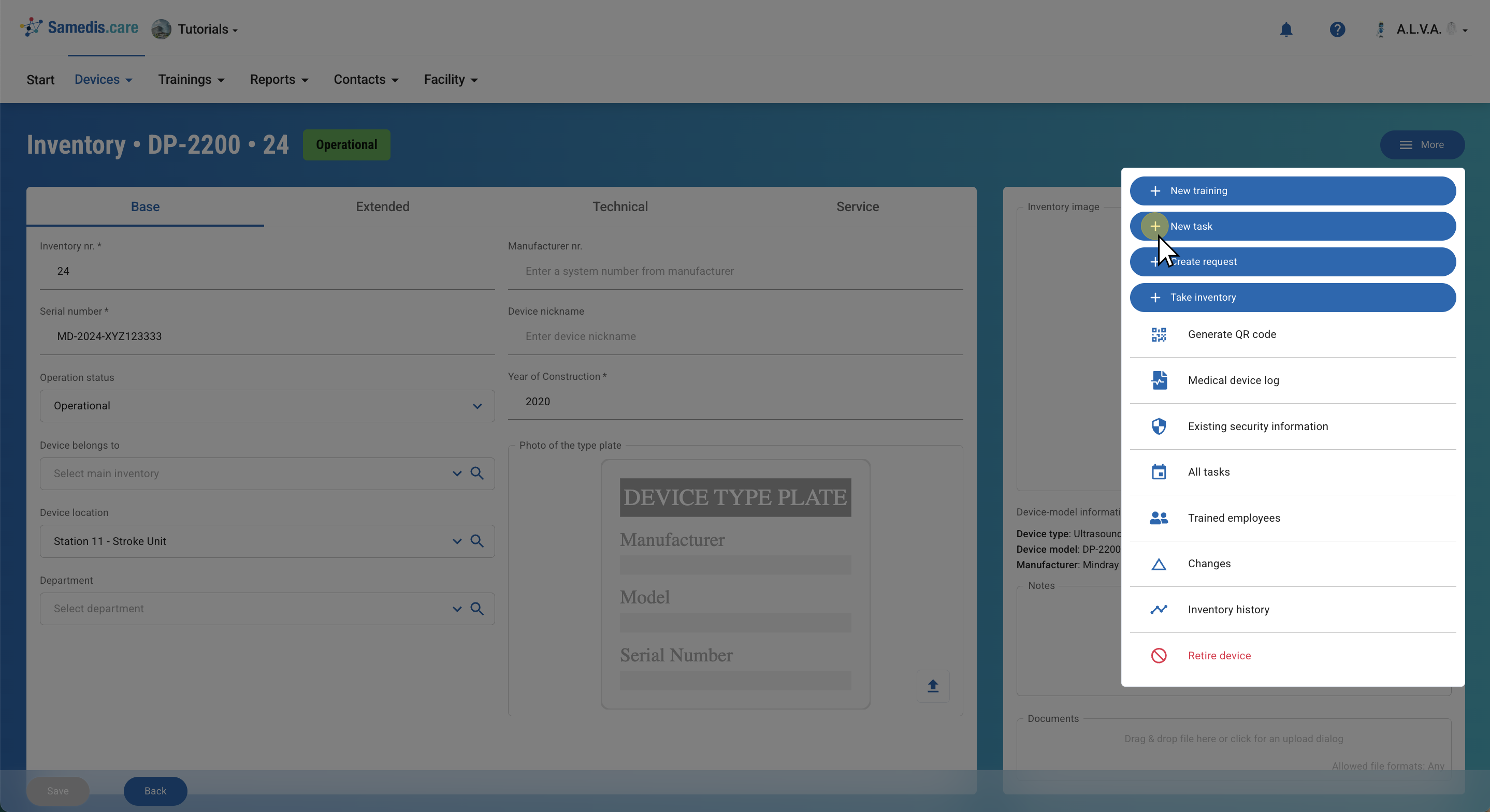 Check out our tutorial Manage test equipment to learn more about how to handle test equipment in Samedis.care.