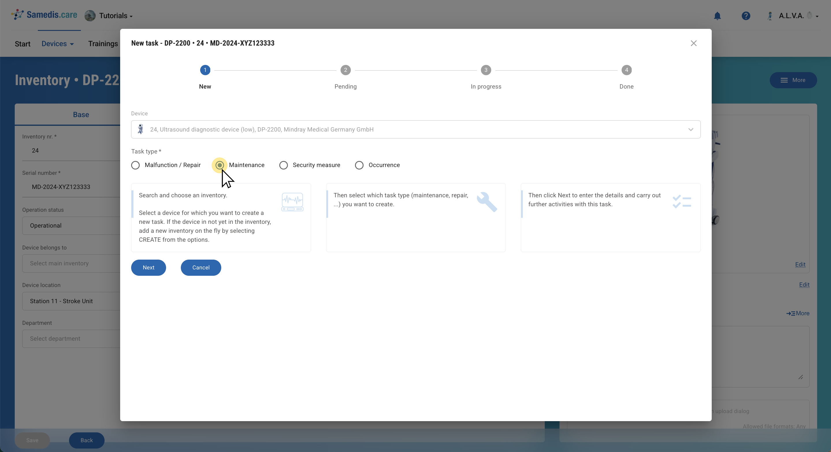 Plan and document all device tasks with Samedis.care – simple, structured, and legally compliant.
