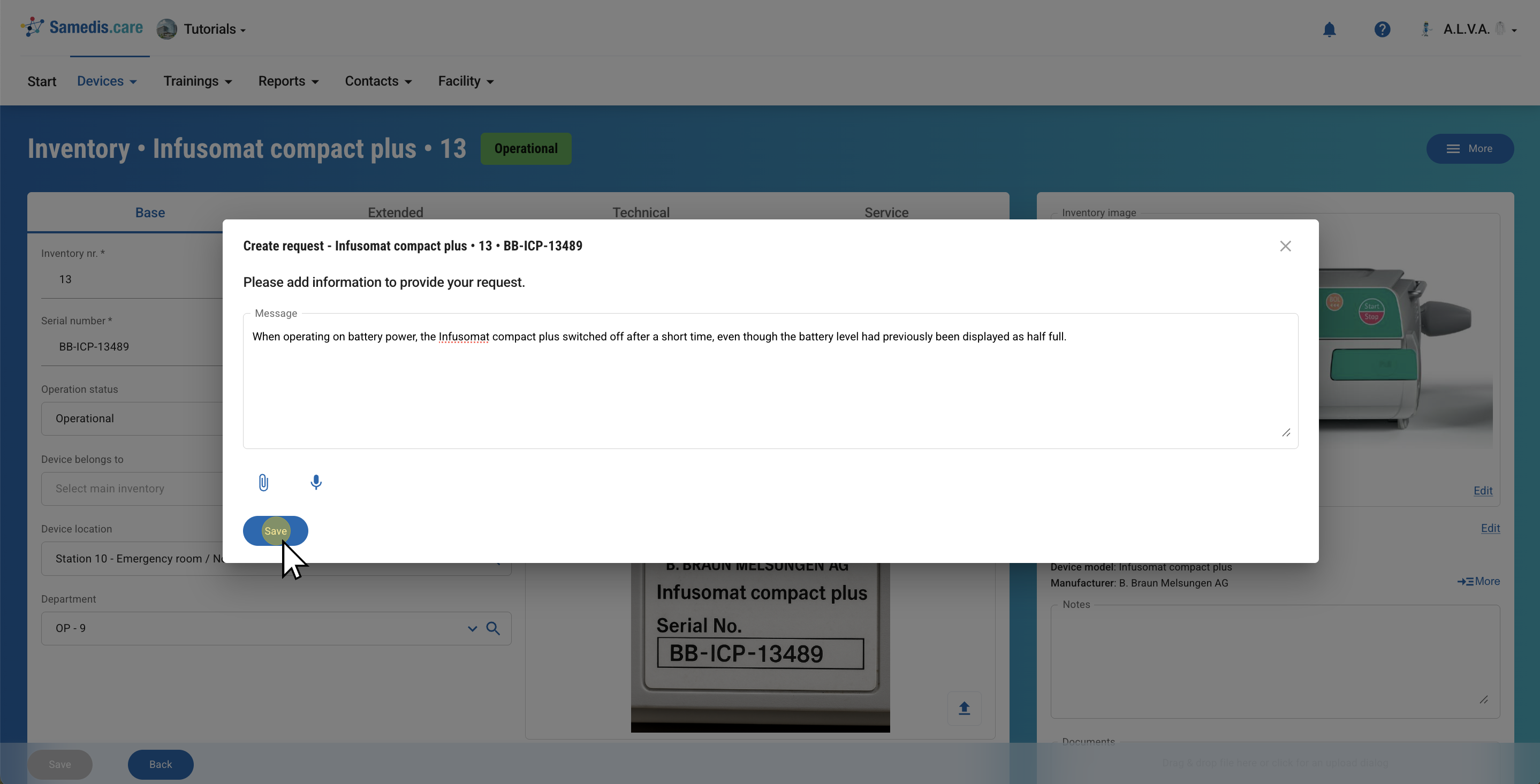 In this tutorial, we will show you how to create requests or report problems with a device in Samedis.care.