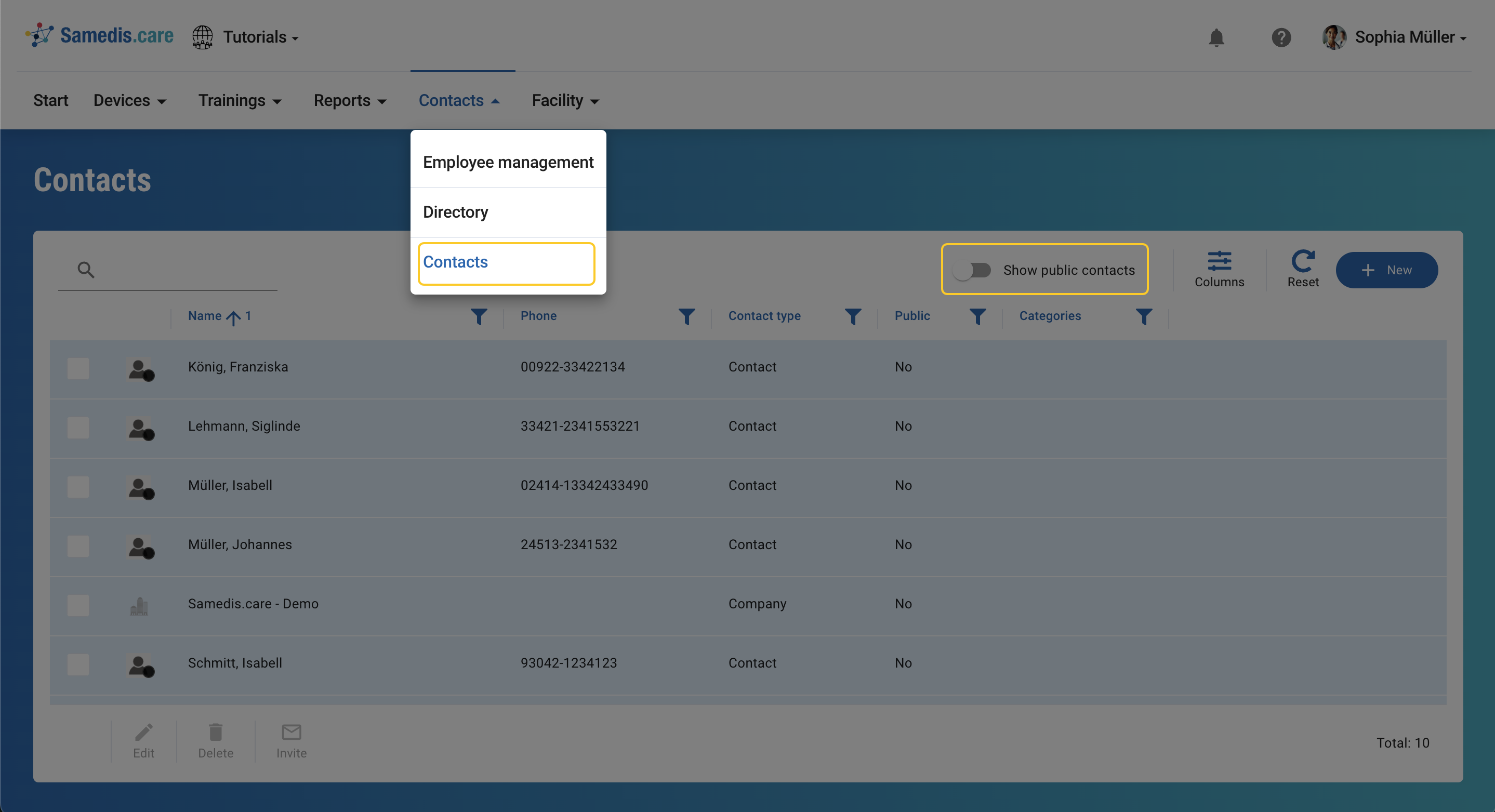 You have the option of inviting contacts to work within your Samedis.care facility. In this way, you can assign tasks or requests directly to them so that they can react immediately or provide support.