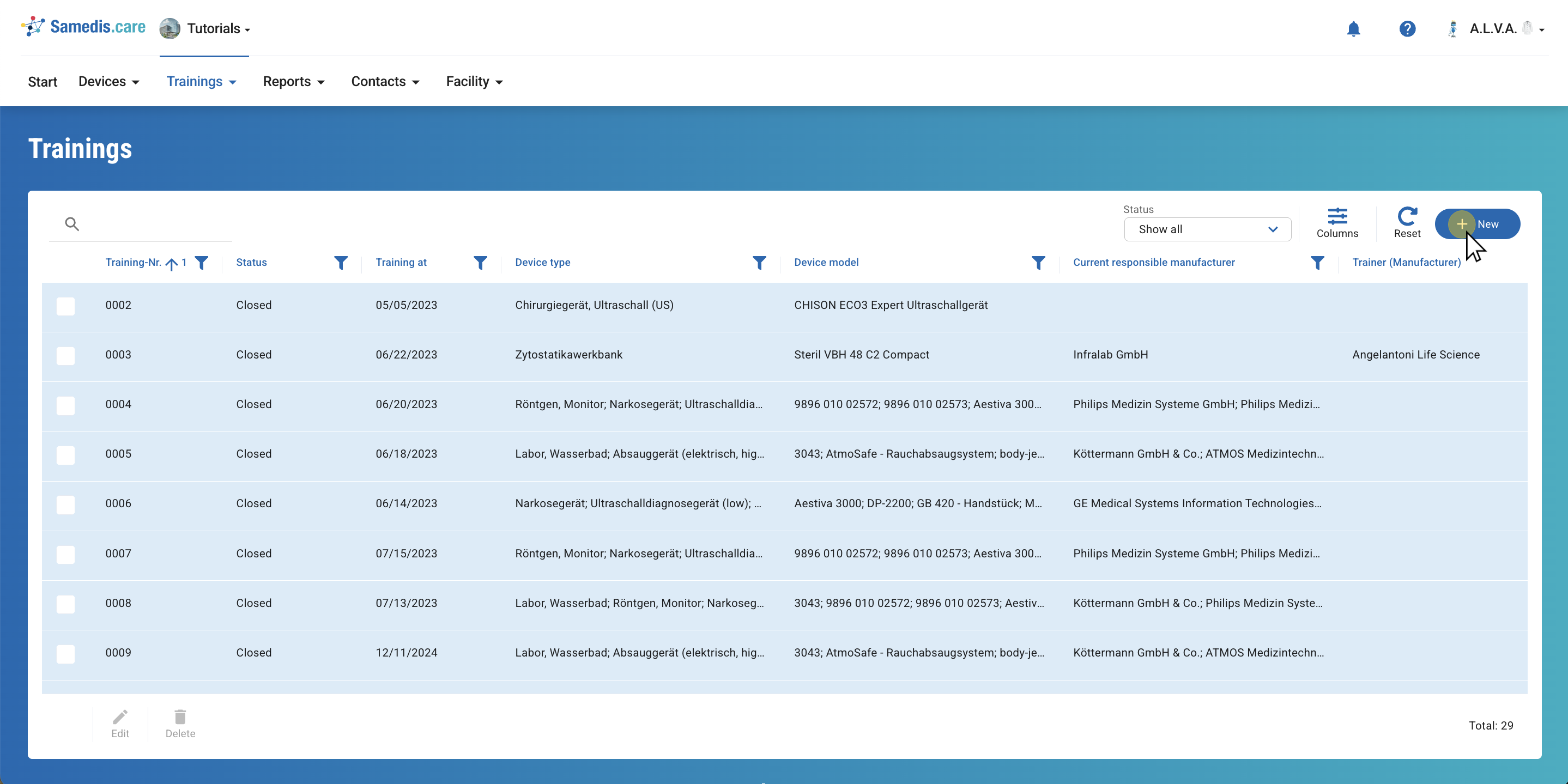 Use the filter option to display only those employees who have already been trained on the relevant devices when selecting the Trainer.