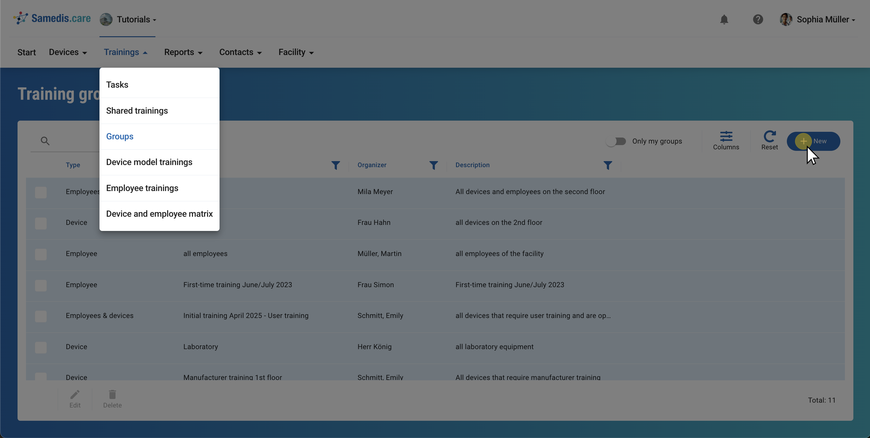 Click on**+ New**to create a new training group.