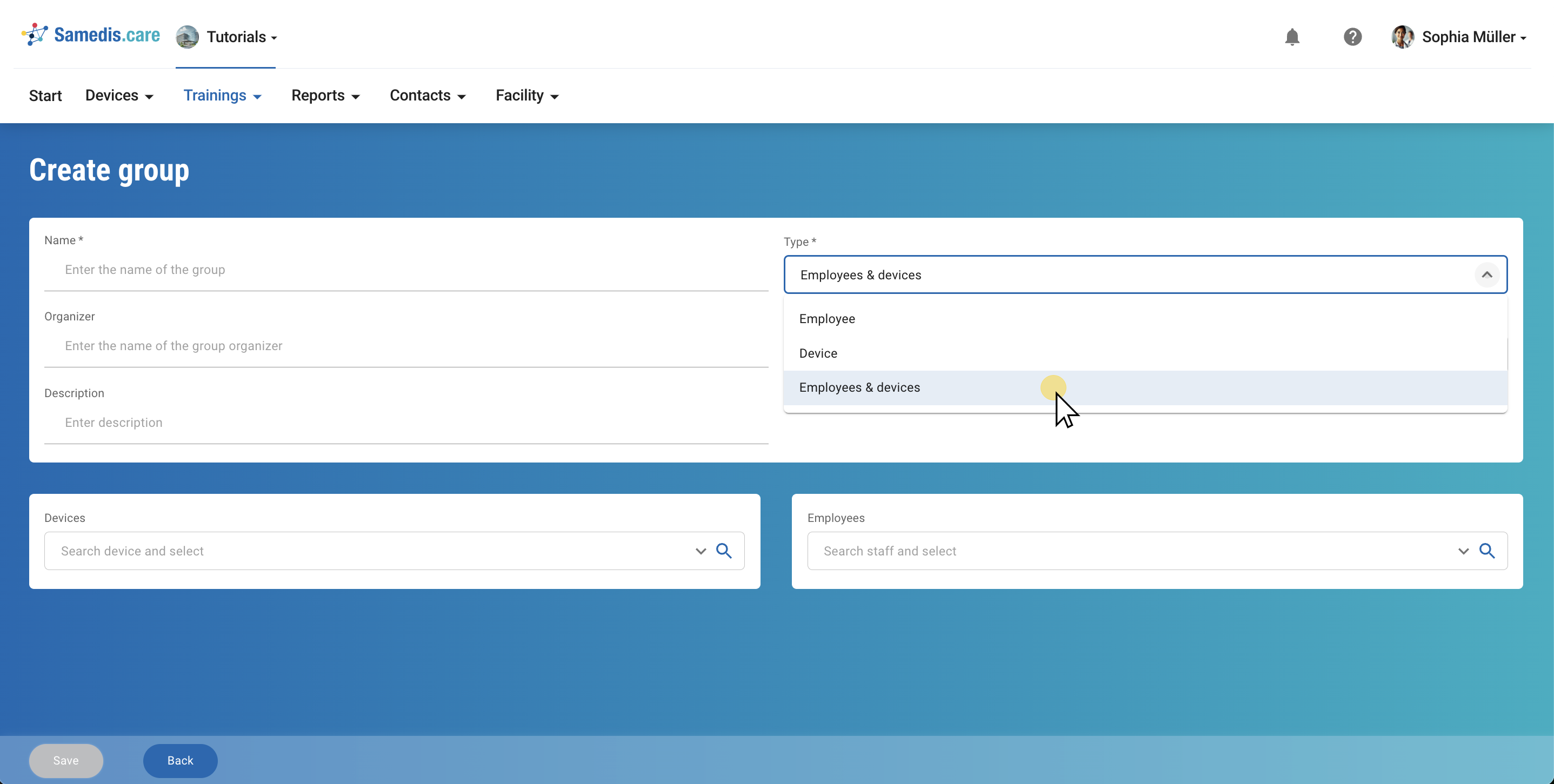 Now, add the required Employees/Devices to your group and then click Save.