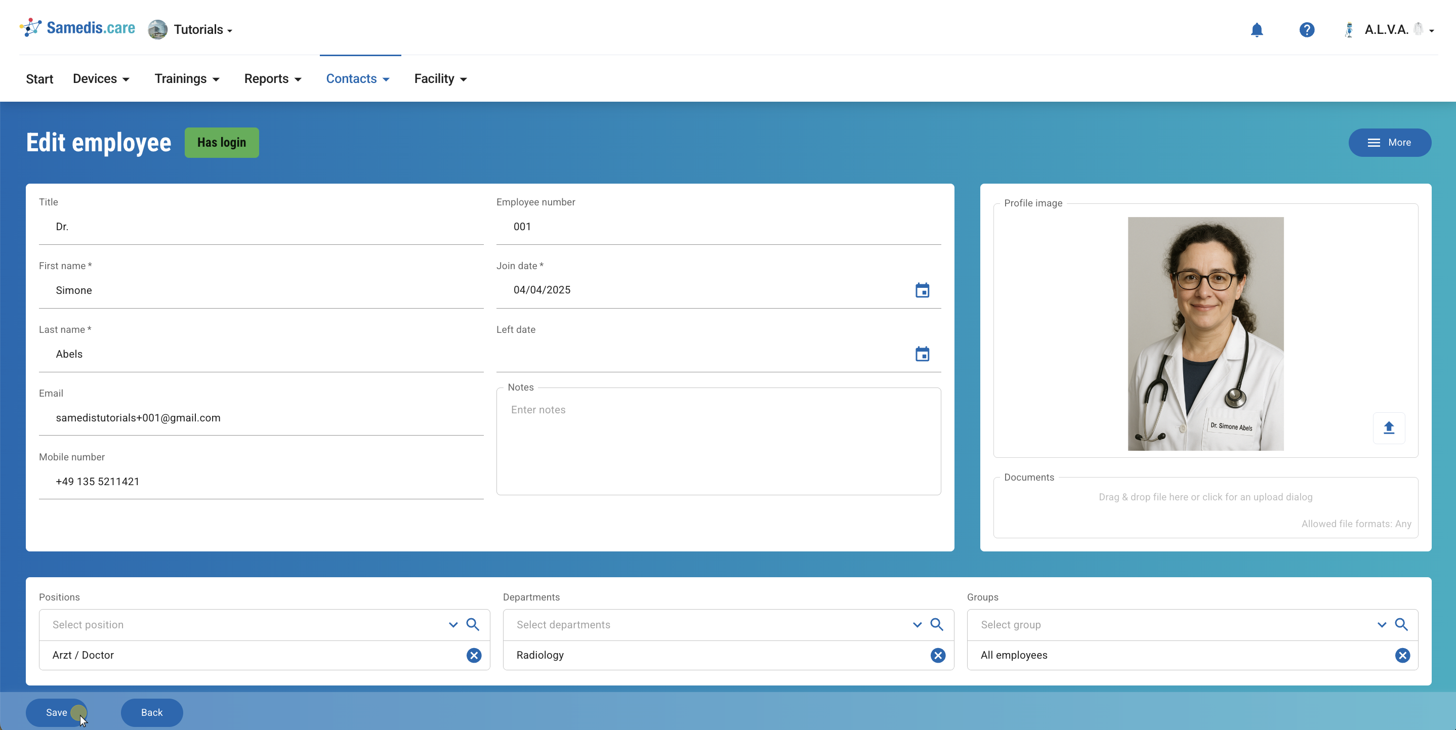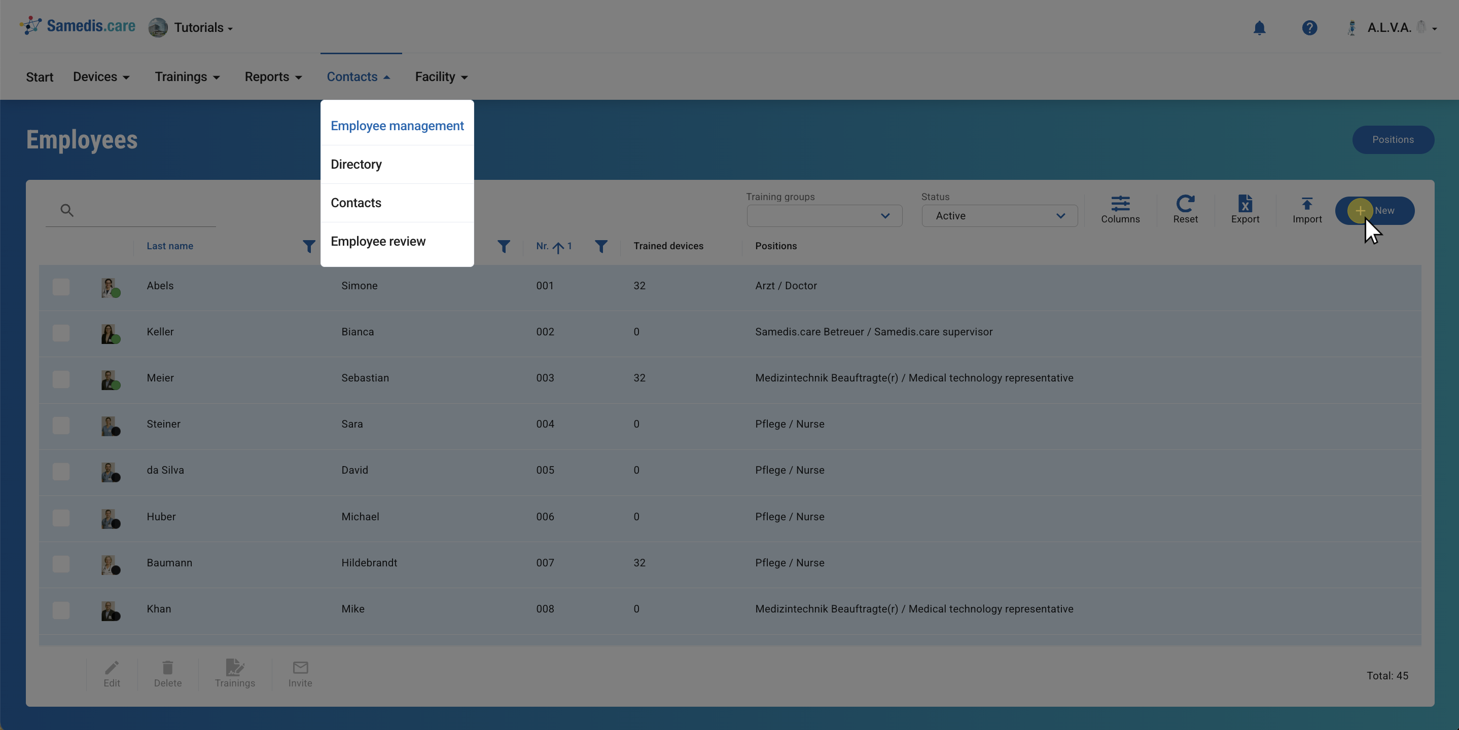 Add all employees of your facility to Samedis.care to manage them centrally and digitally.