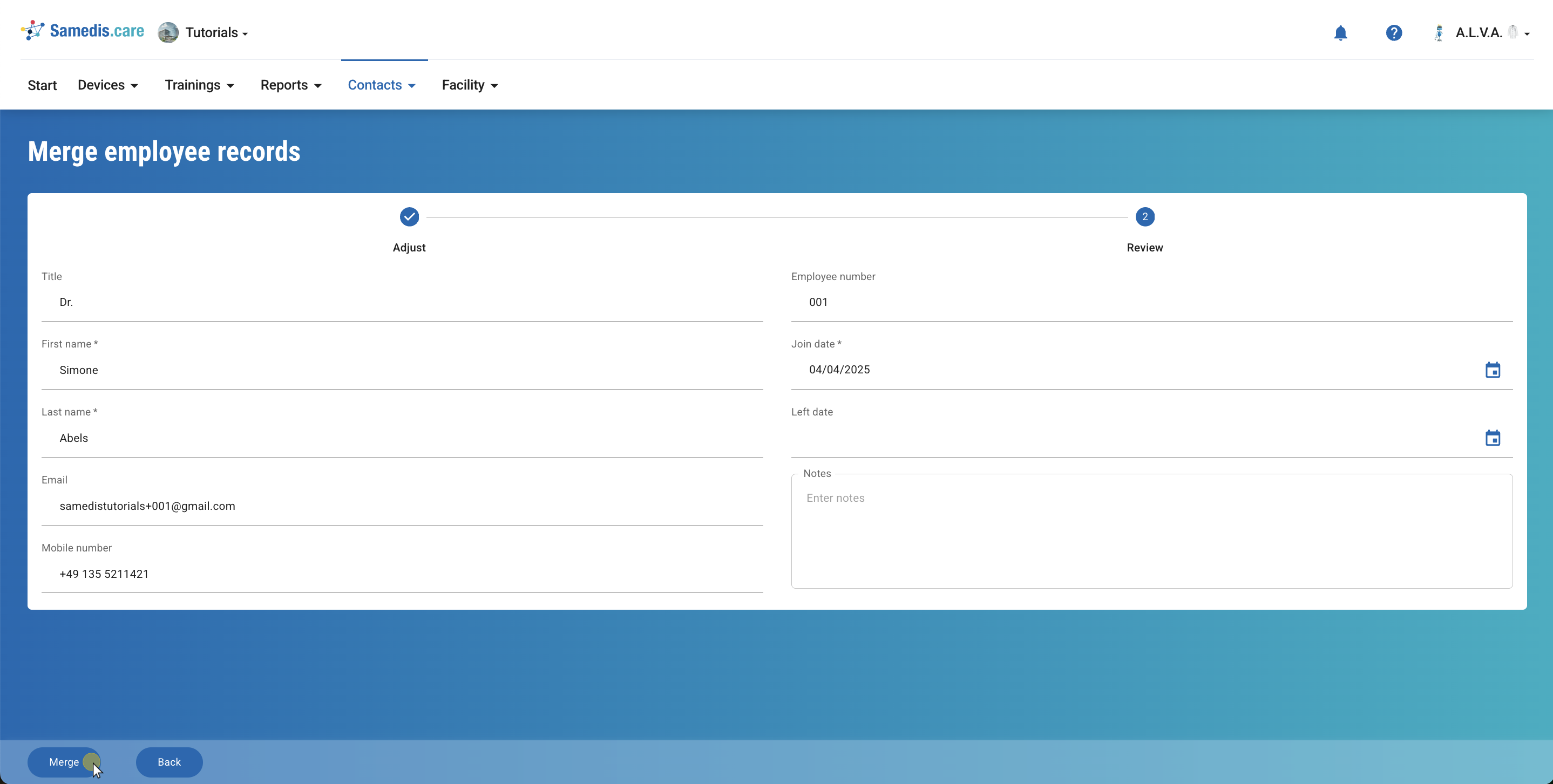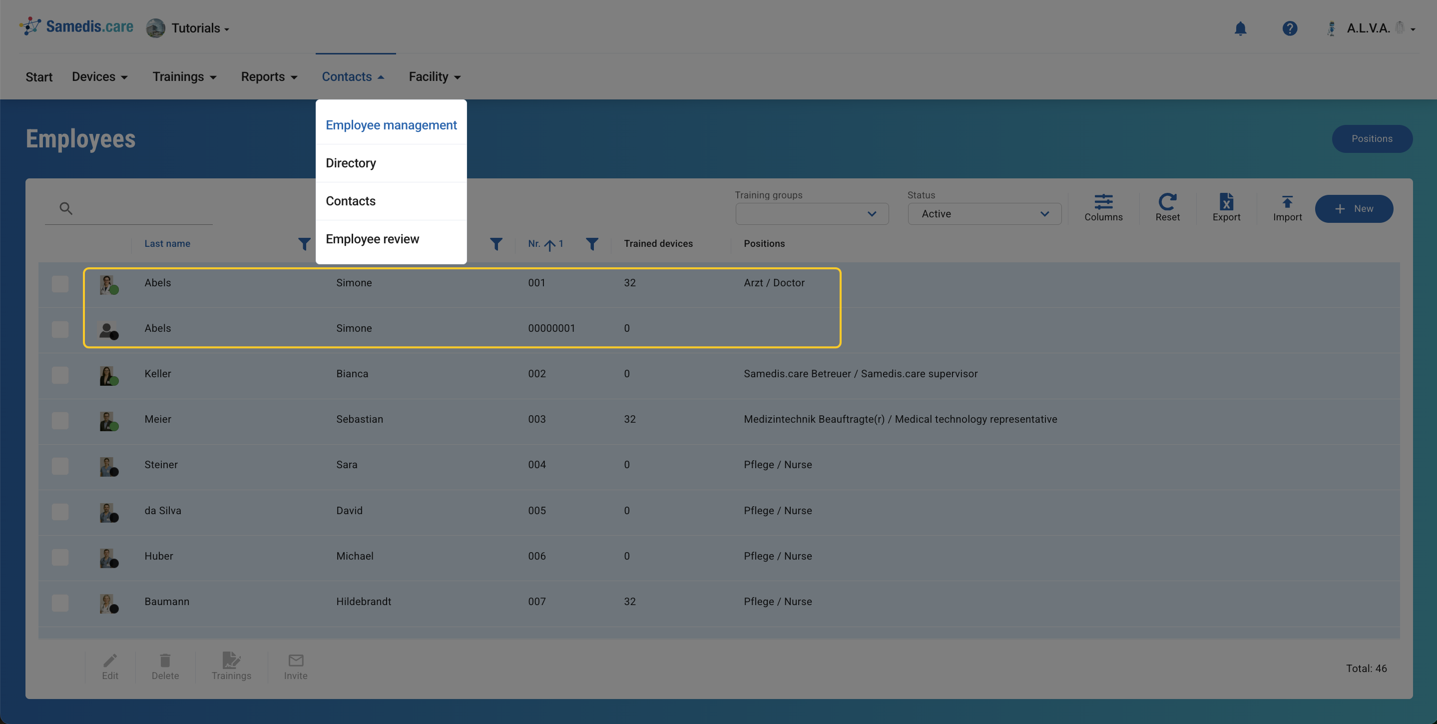 Has an employee been listed twice in your facility? In Samedis.care, you can easily merge duplicate entries.