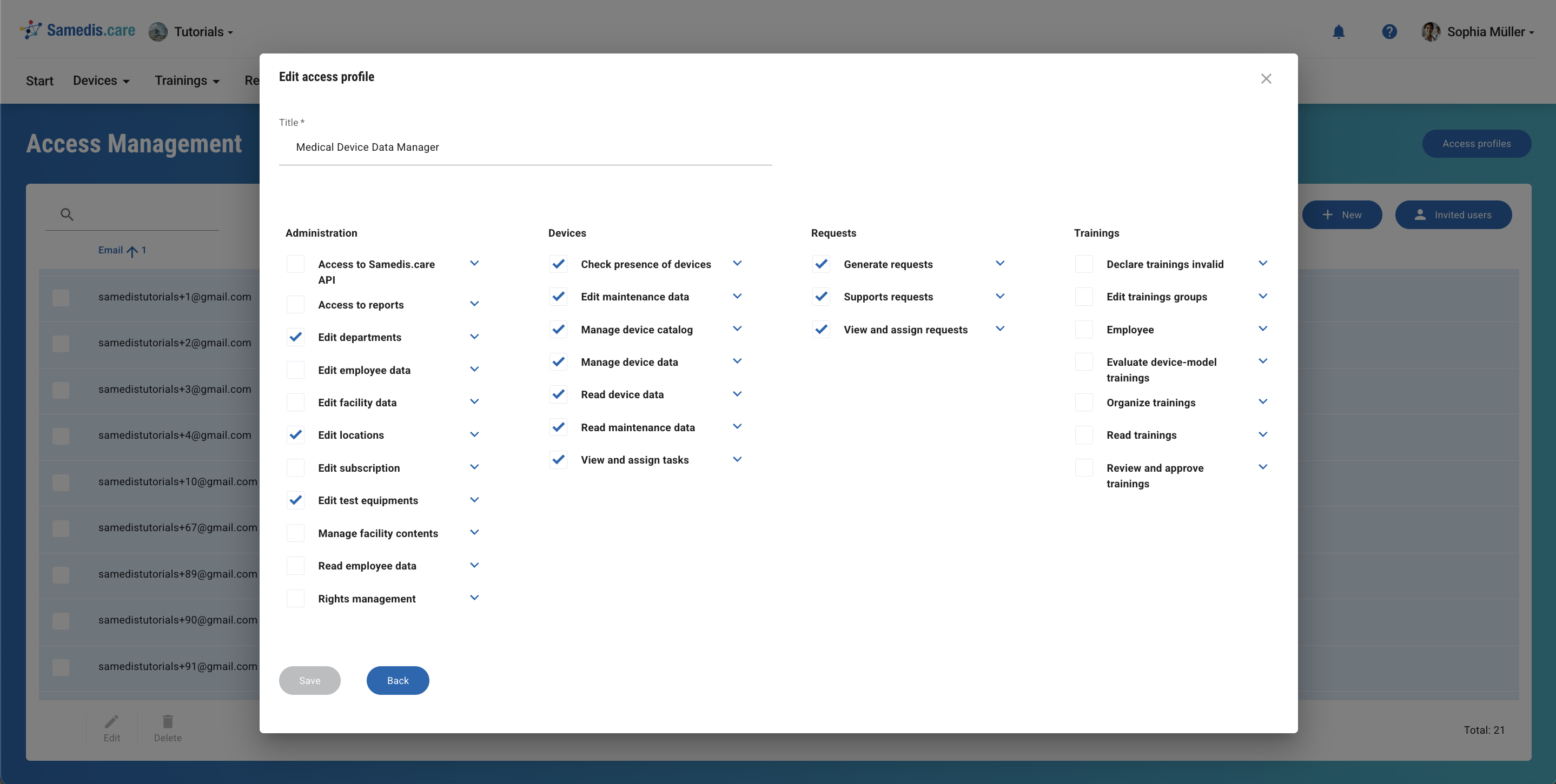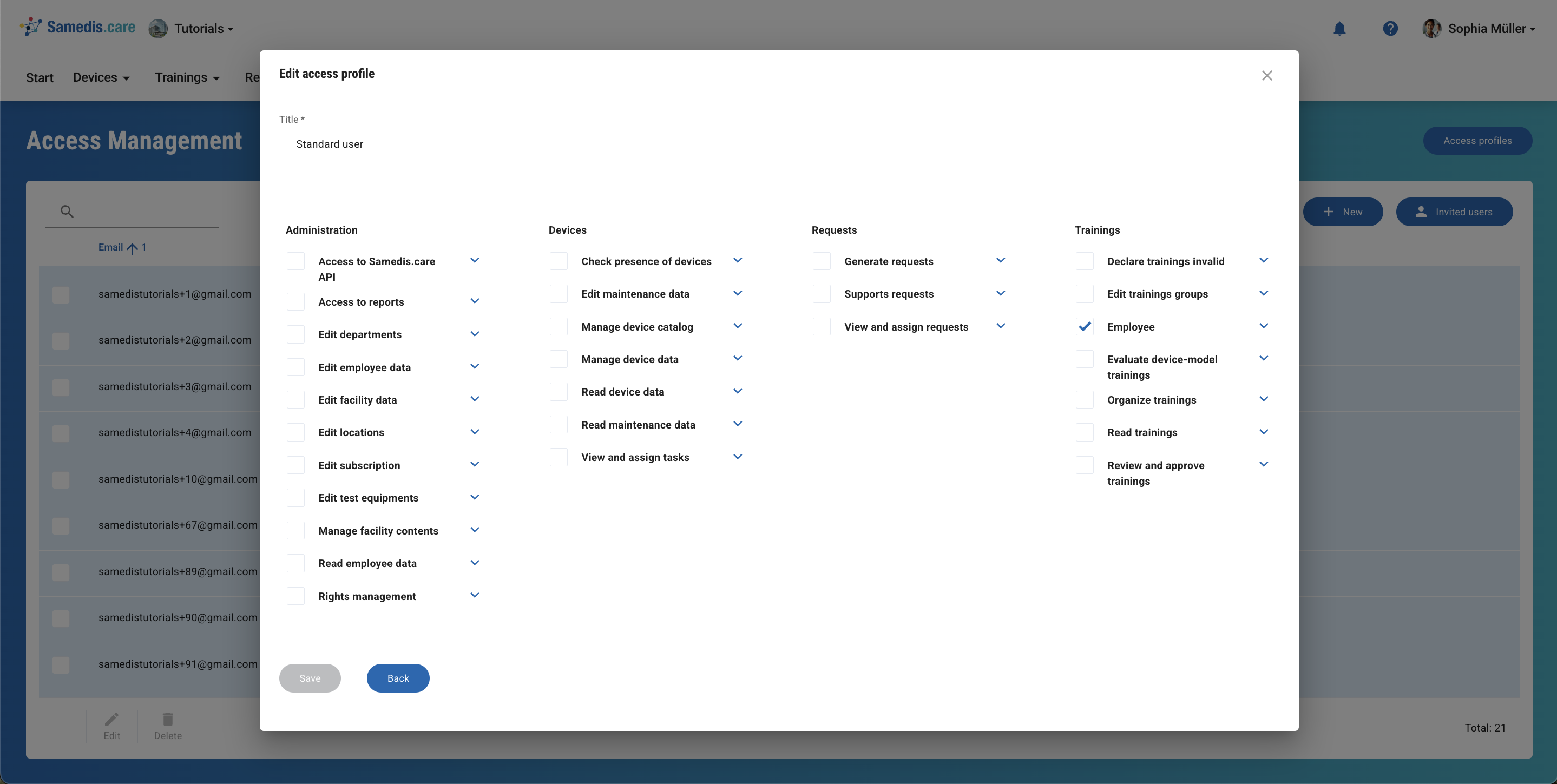 Standard users work with medical devices on a daily basis. To do so, they should have access to their trainings in my.samedis.care (access right: Employee)