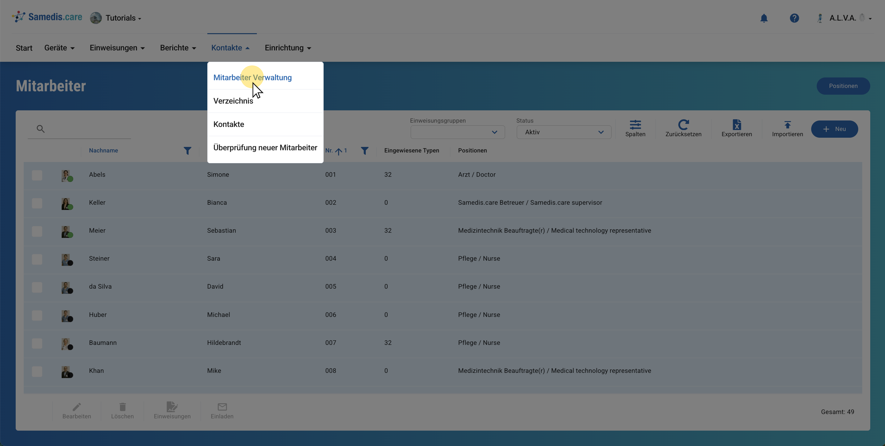 Hinterlege alle Mitarbeitenden in Samedis.care.