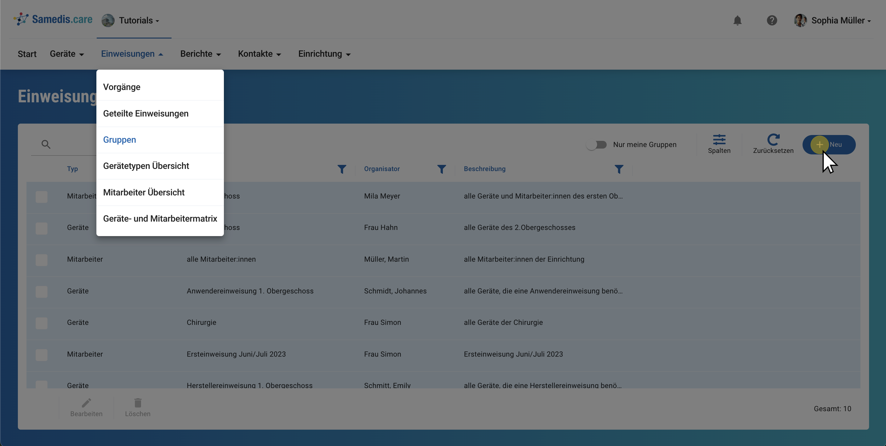 Klicke auf + Neu,um eine neue Einweisungsgruppe zu erstellen.