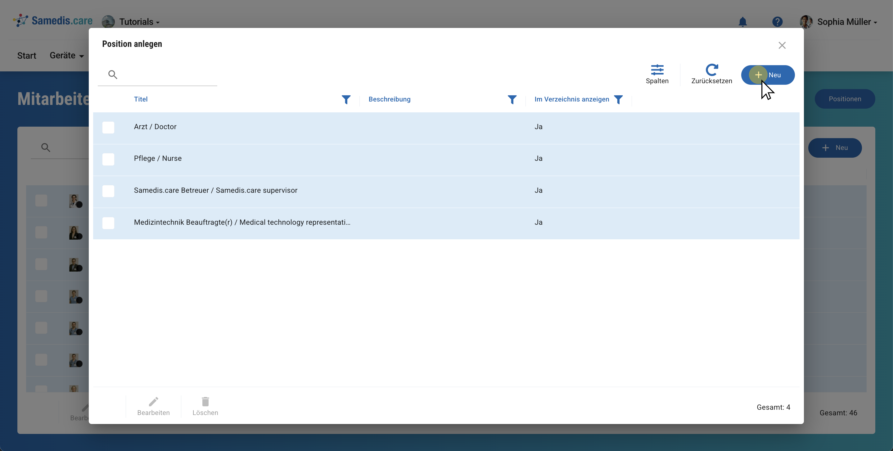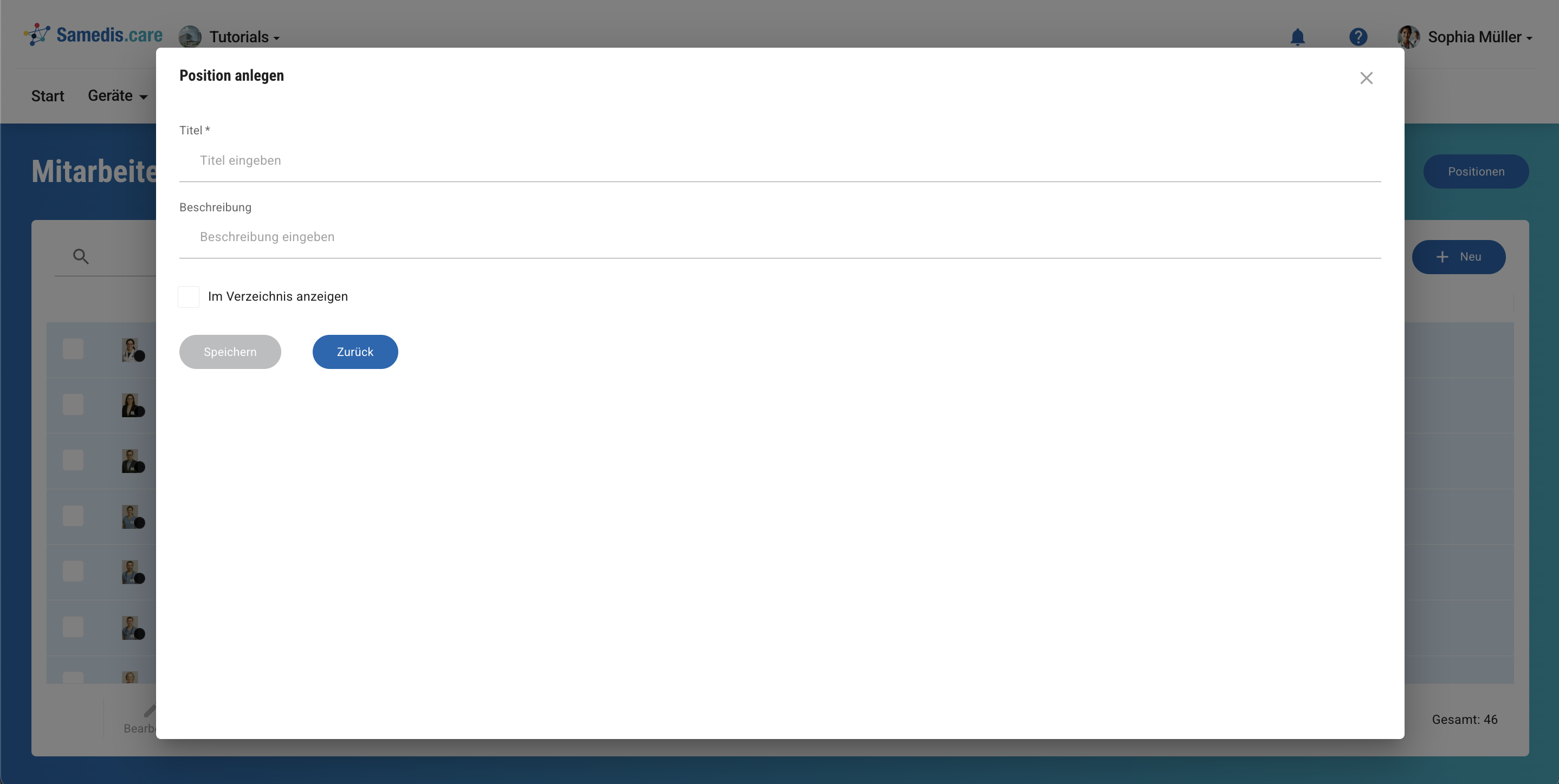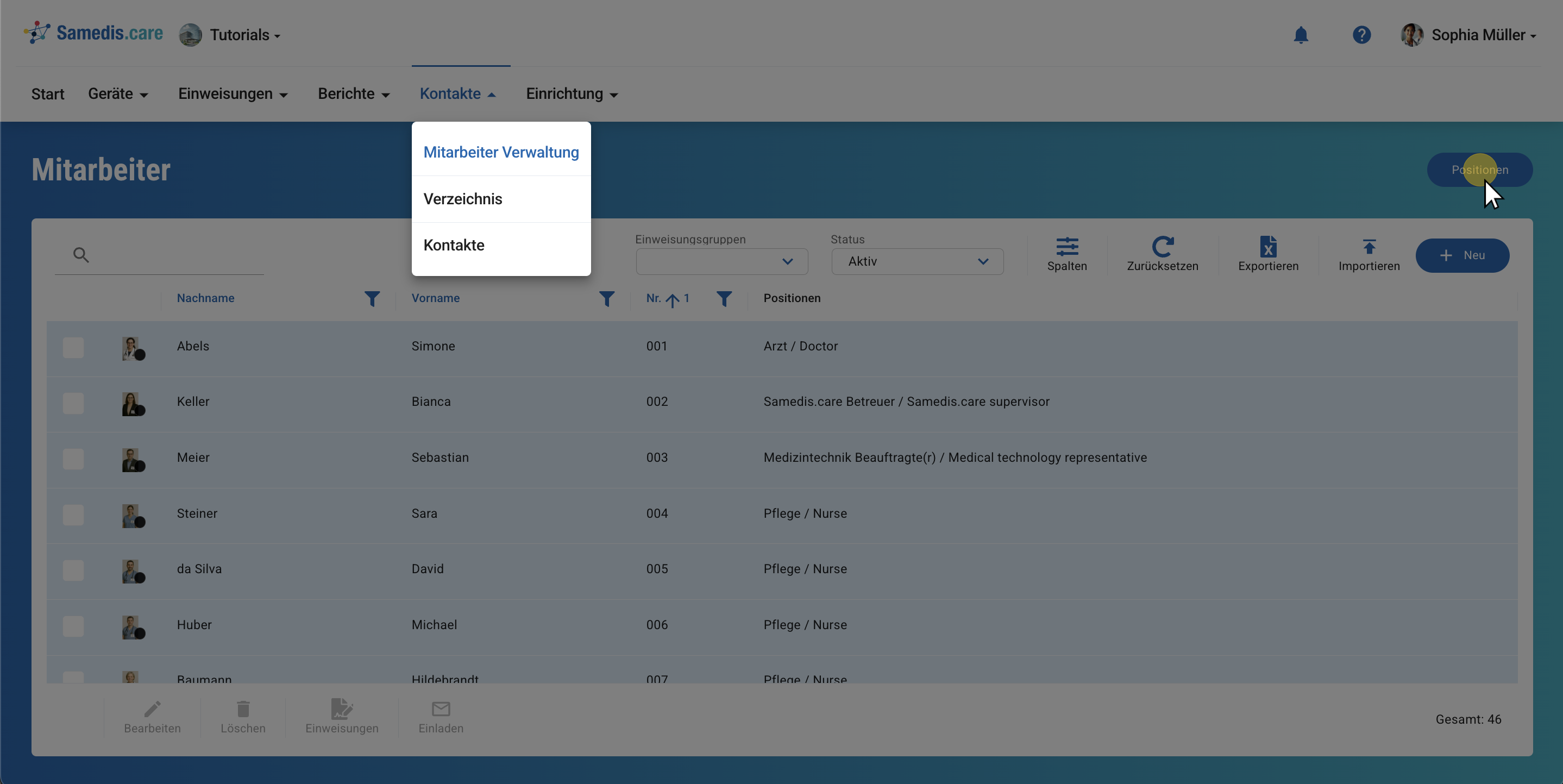 Zur besseren Übersicht über einzelne Zuständigkeiten innerhalb deiner Einrichtung kannst du Mitarbeitenden in Samedis.care verschiedene Positionen zuweisen.