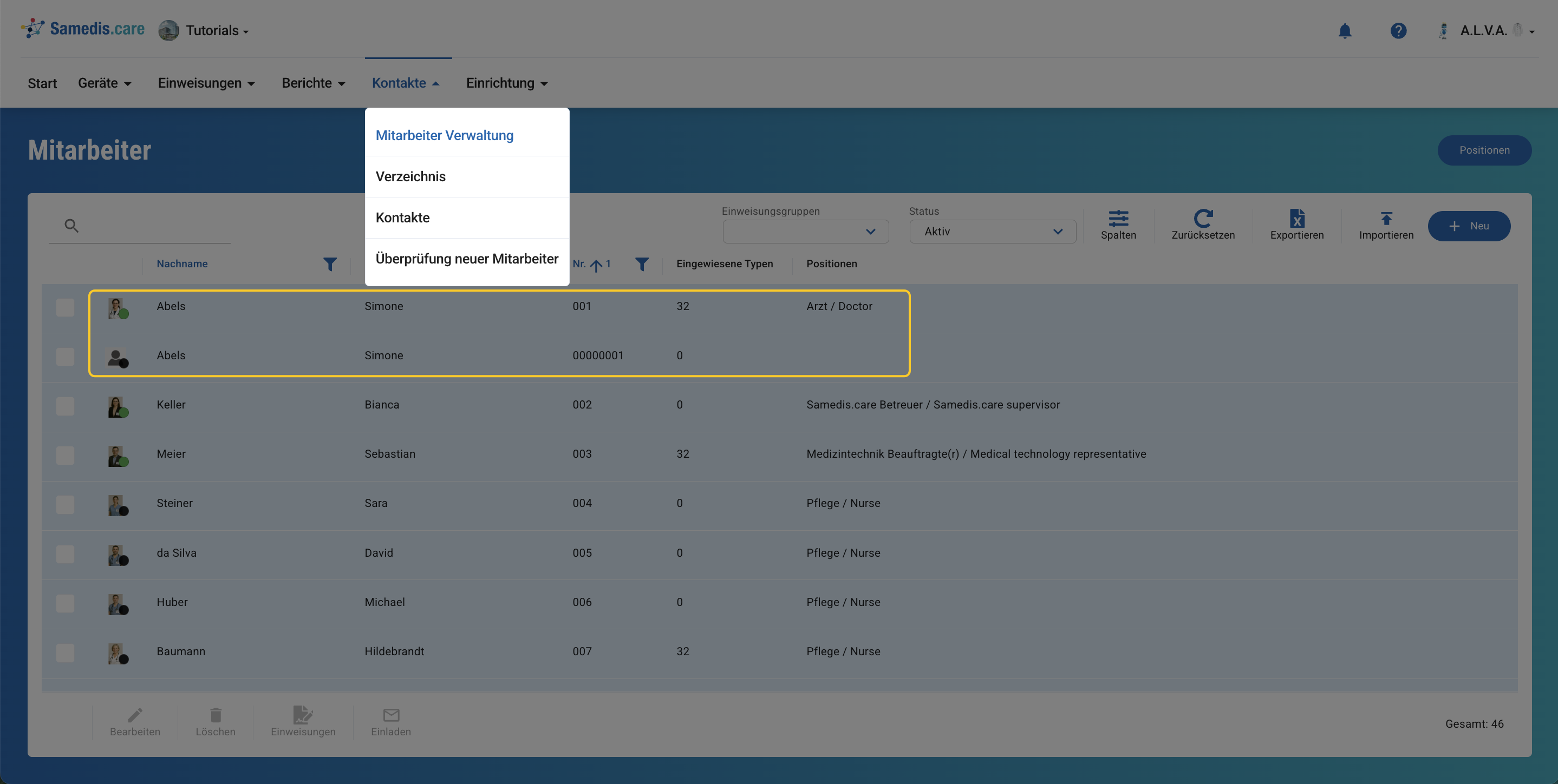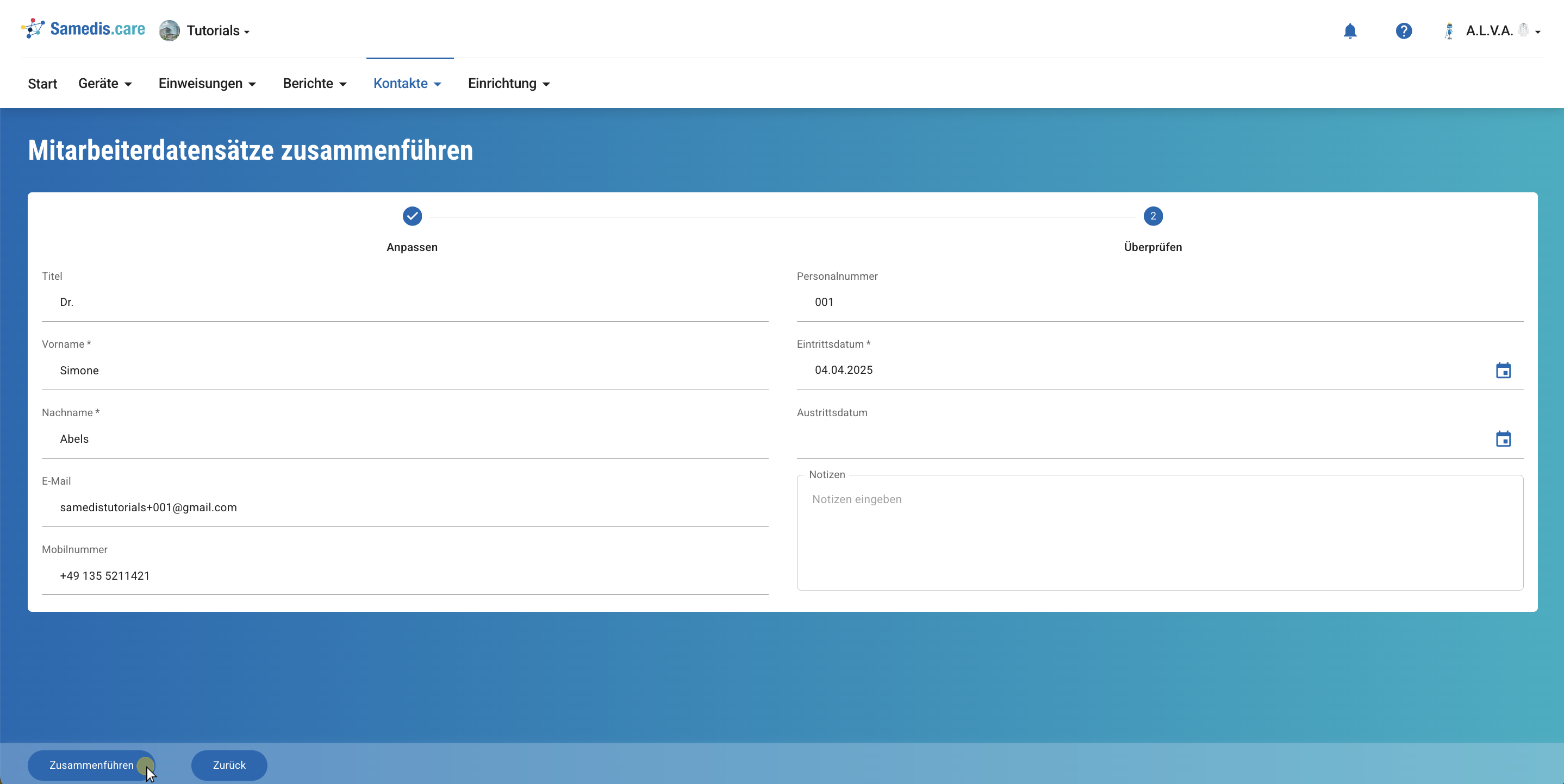 Wurde in deiner Einrichtung ein:e Mitarbeiter:in doppelt erfasst? In Samedis.care kannst du doppelte Einträge ganz einfach zusammenführen.