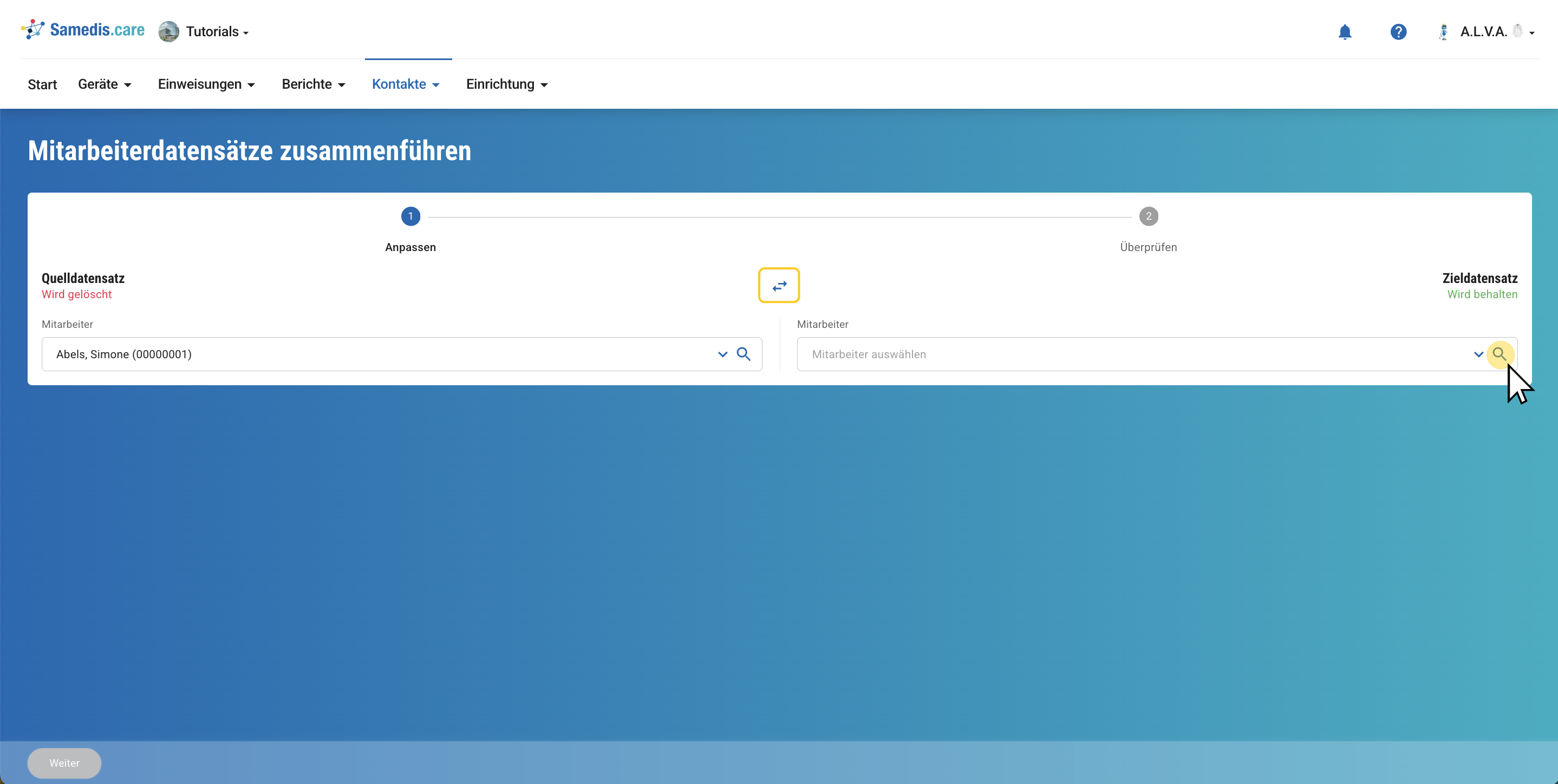 Wähle nun den Zieldatensatz aus – also den Mitarbeitereintrag, der zur gleichen Person gehört und den du behalten möchtest.