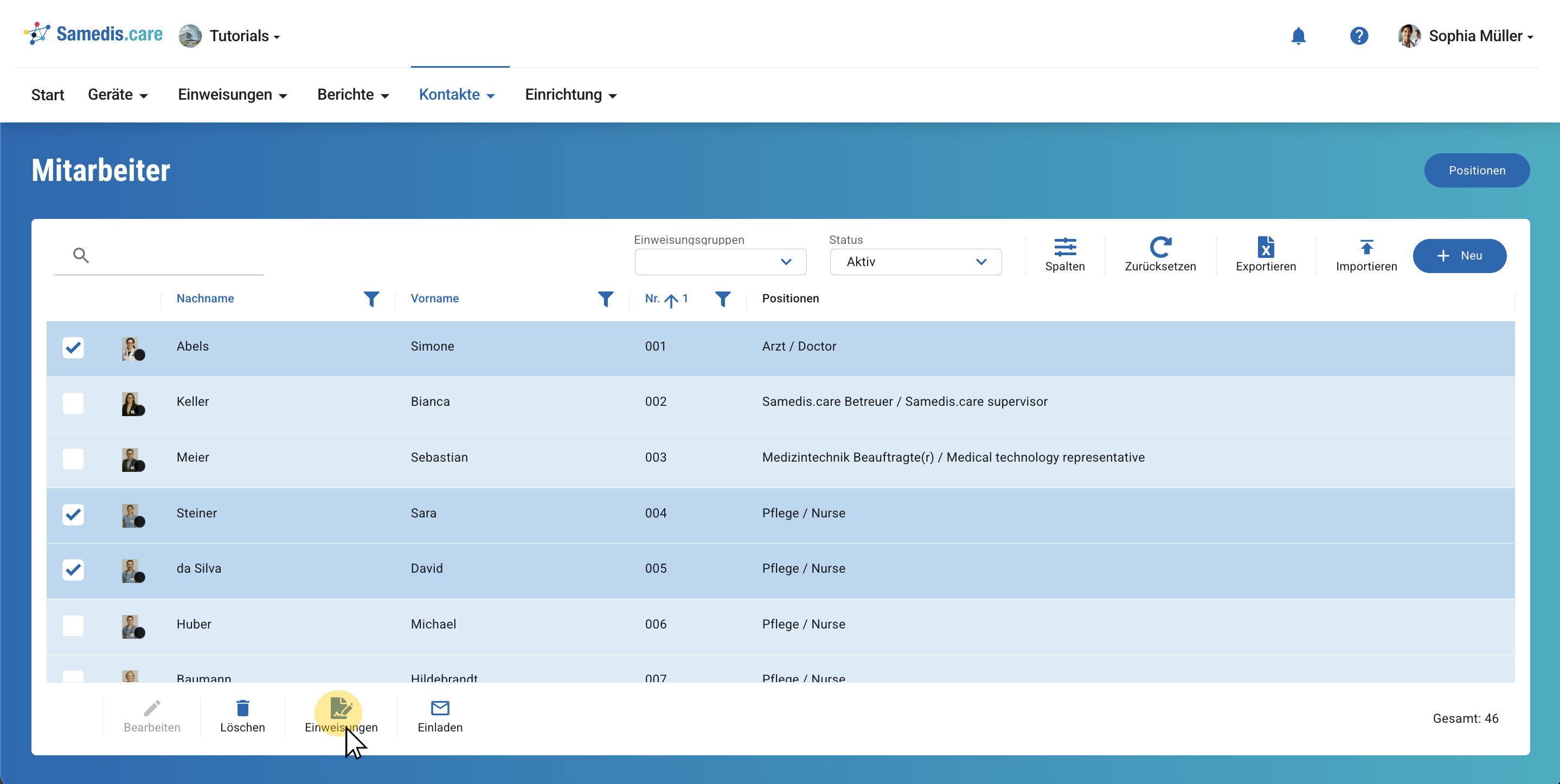 Wähle dort den Menüpunkt Mitarbeiter Einweisungen aus.