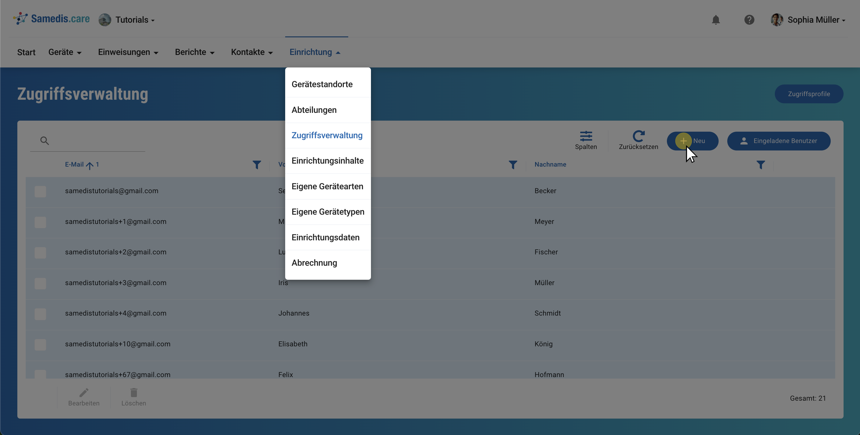 Lade interne oder externe Personen zur Mitarbeit in deiner Samedis.care Einrichtung ein und berechtige sie je nach Aufgabe oder Anwendungsgebiet.