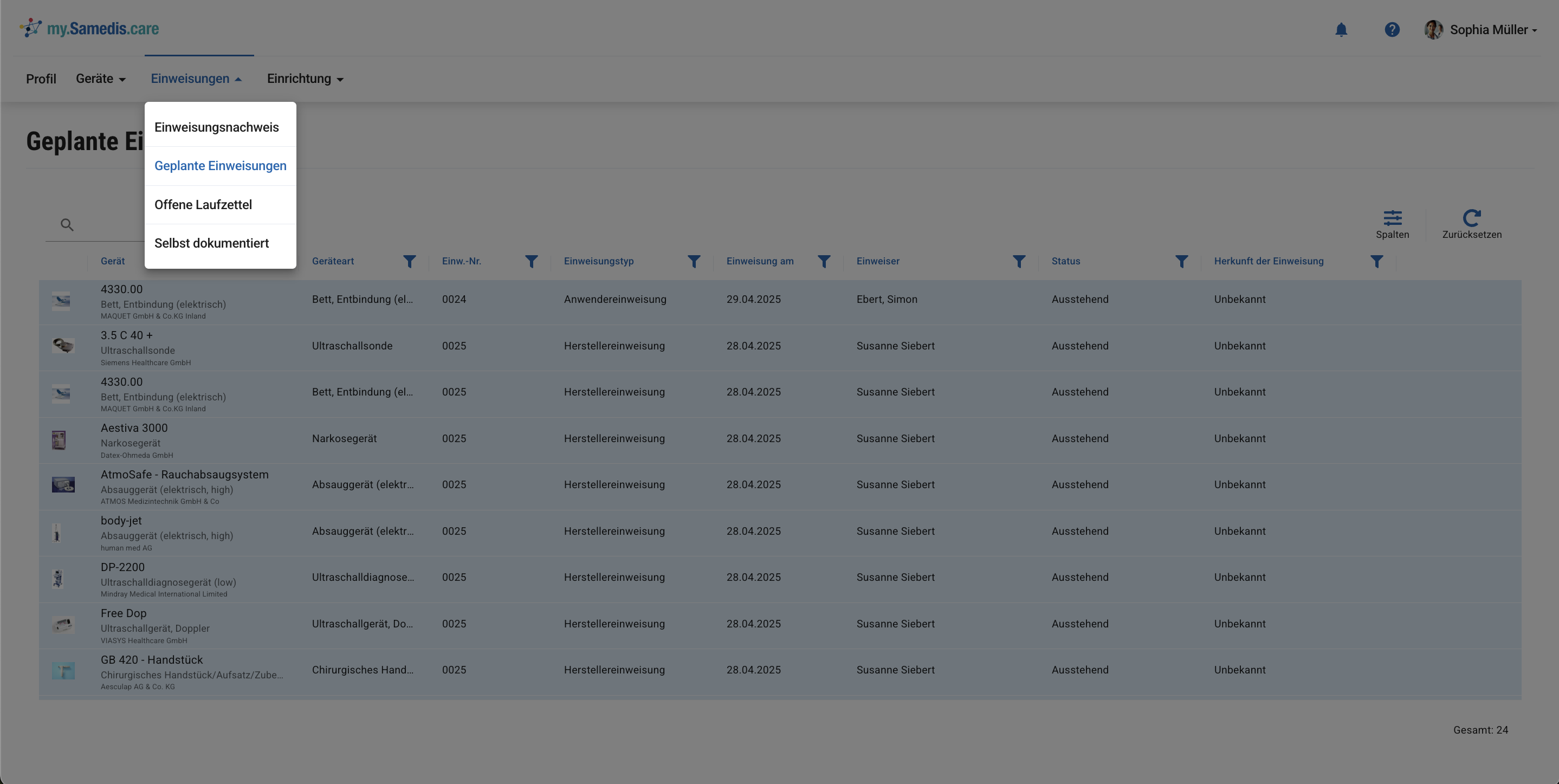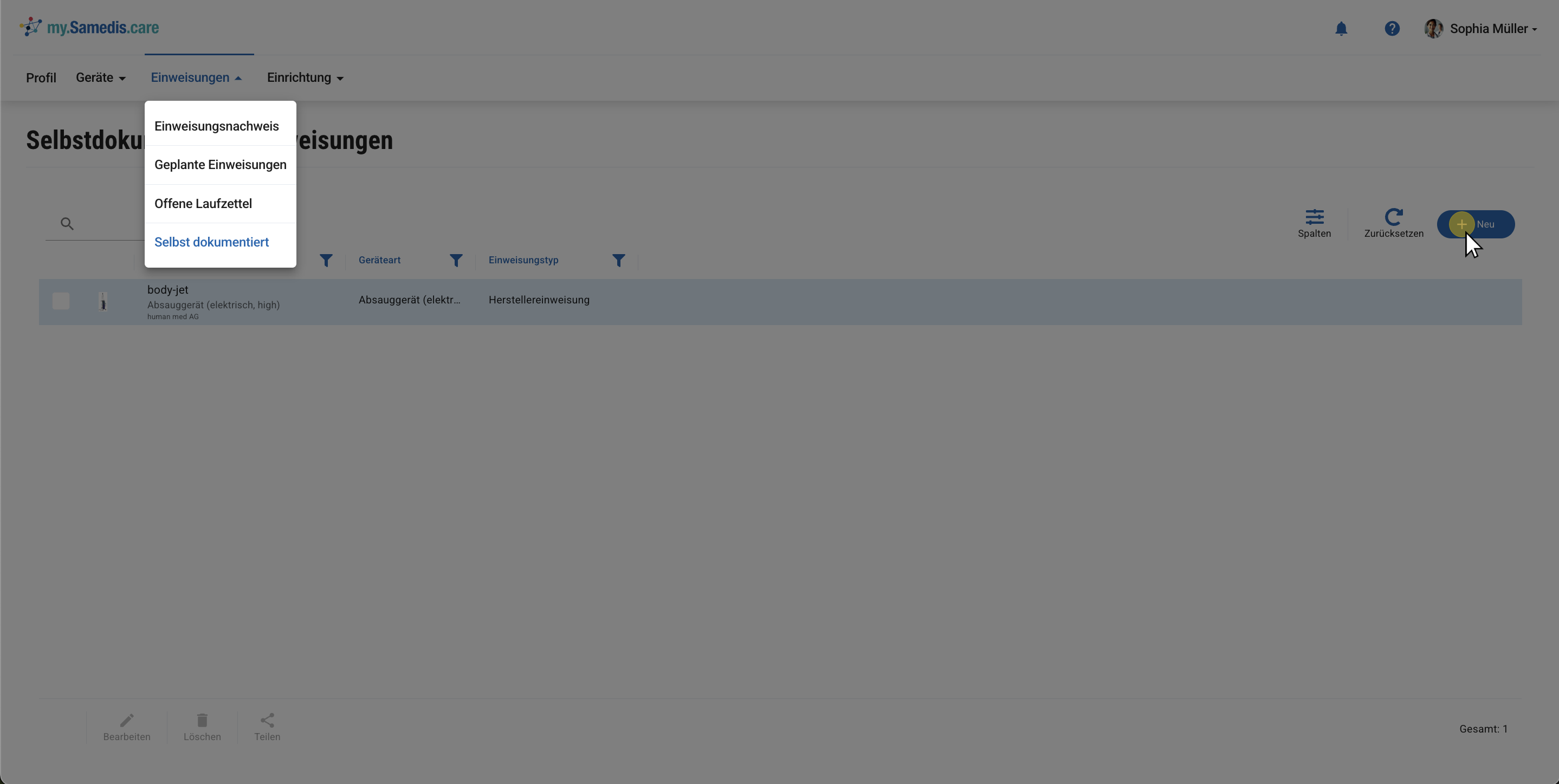 Dein my.samedis.care Einweisungsnachweis ermöglicht dir jederzeit den Zugriff auf all deine erhaltenen Geräteeinweisungen – unabhängig davon, ob du an einer Einweisung in einer Einrichtung teilgenommen oder den Nachweis selbst hochgeladen hast.