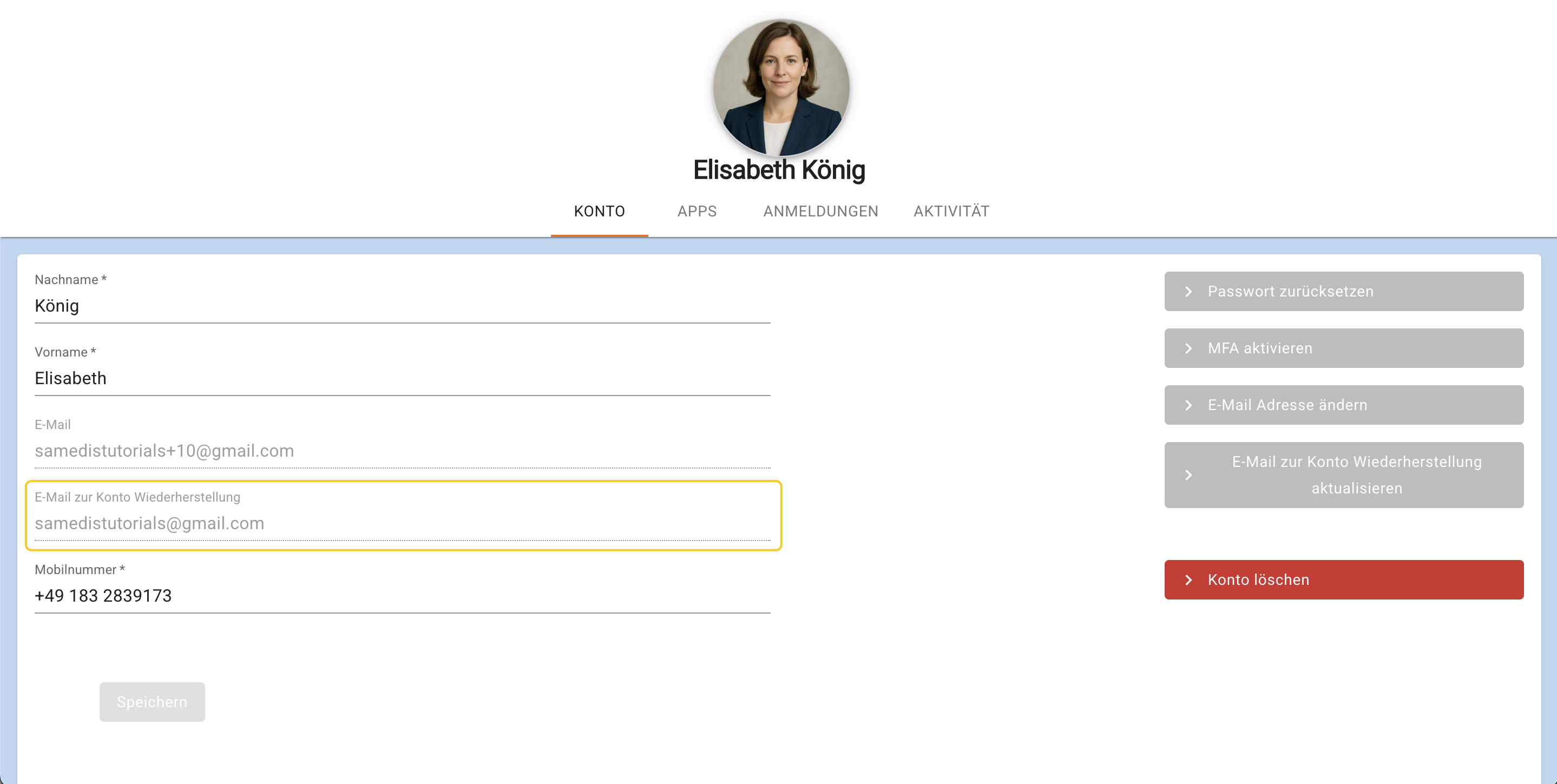 Alle Informationen dazu, wie du eine E-Mail zur Konto Wiederherstellung hinterlegst, findest du im Tutorial Wiederherstellungs-E-Mail-Adresse hinterlegen.