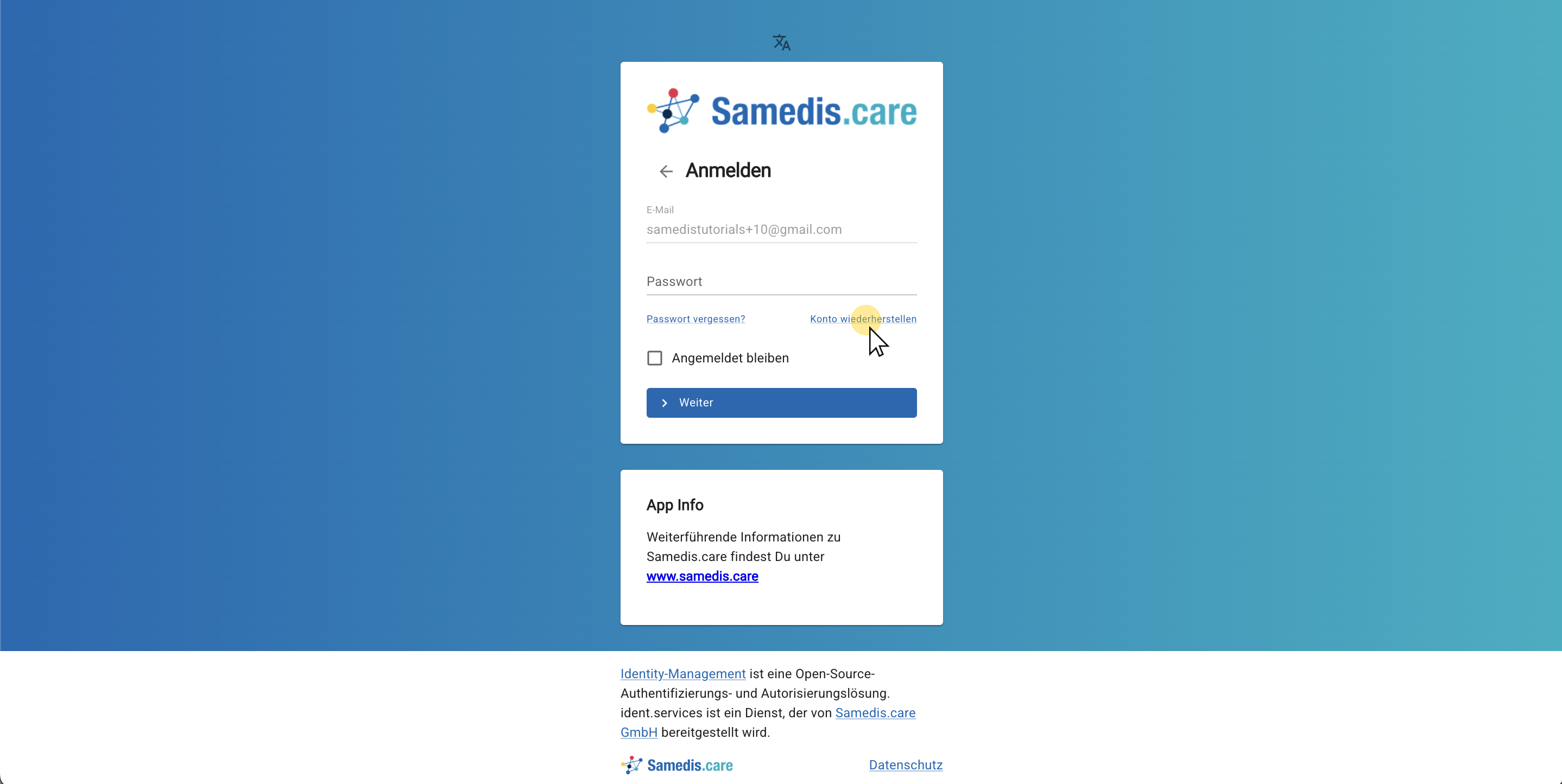 Wenn du deinen Arbeitsplatz wechselst, verlierst du möglicherweise den Zugriff auf deine bisherige berufliche E-Mail-Adresse. Falls du dein Samedis.care-Konto mit genau dieser Adresse erstellt hast, kannst du dich nicht mehr bei my.samedis.care anmelden. In diesem Tutorial zeigen wir dir, wie du dein Konto mithilfe deiner hinterlegten E-Mail-Adresse zur Kontowiederherstellung reaktivierst, um wieder Zugriff auf dein Profil zu erhalten.