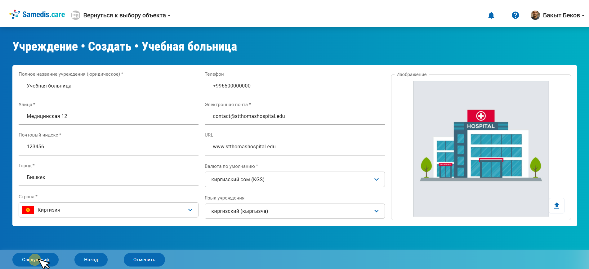 Вы можете обновить или дополнить данные учреждения в любое время позже.