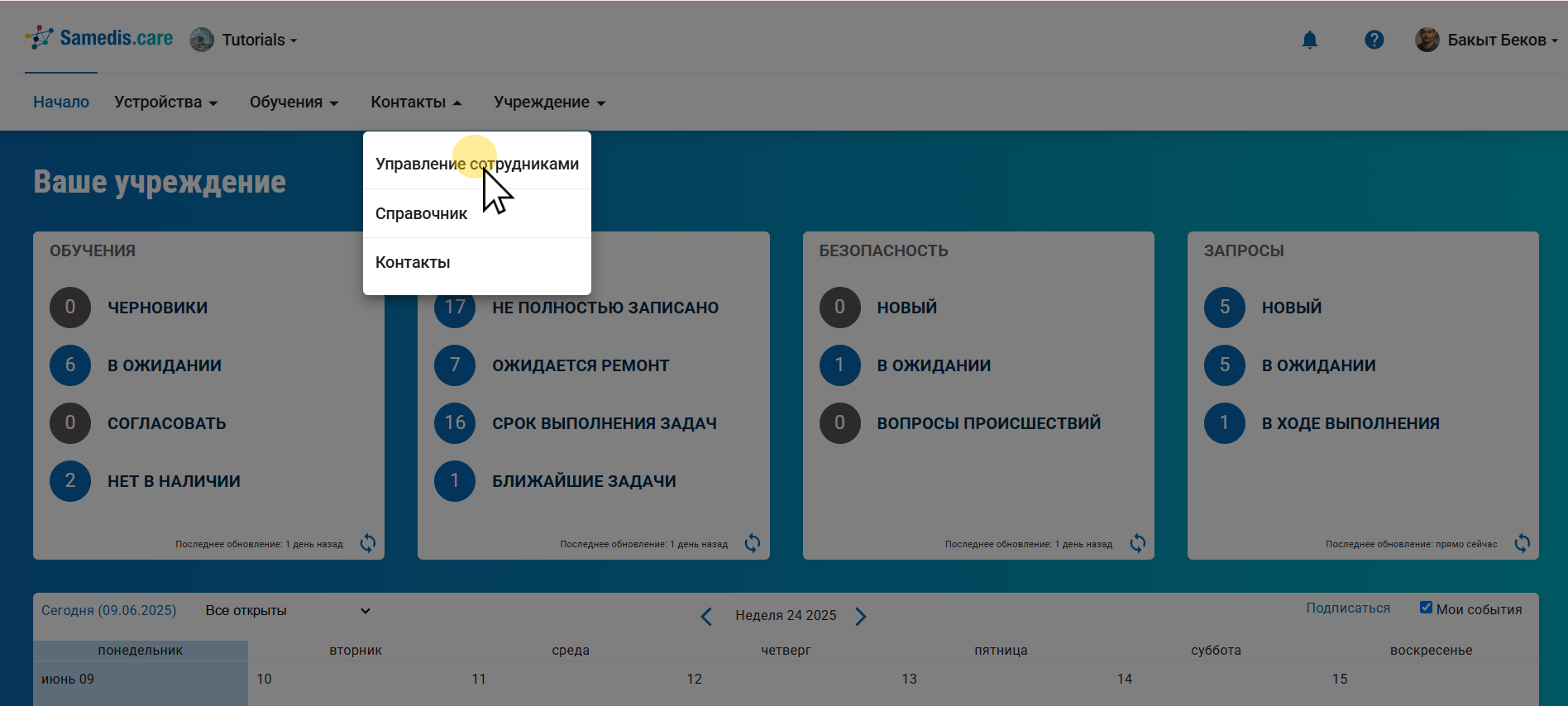 Введите всех сотрудников в Samedis.care.