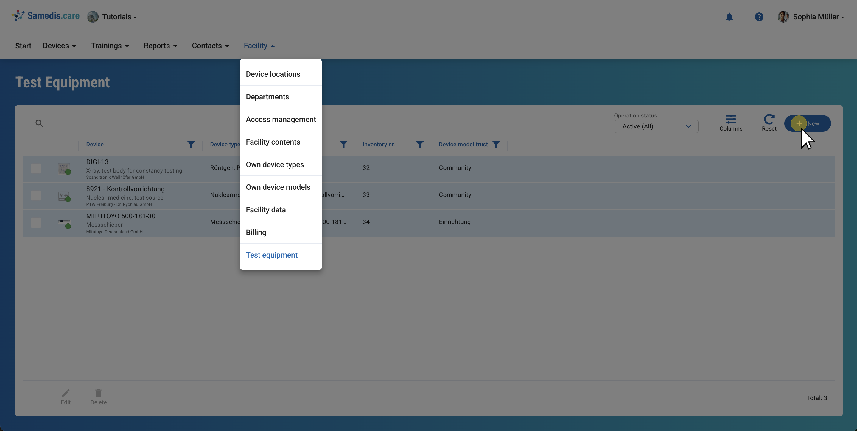 Фильтруйте по испытательному оборудованию в каталоге устройств, чтобы найти подходящие записи. Если нужного элемента нет, вы можете создать его как новый тип устройства.