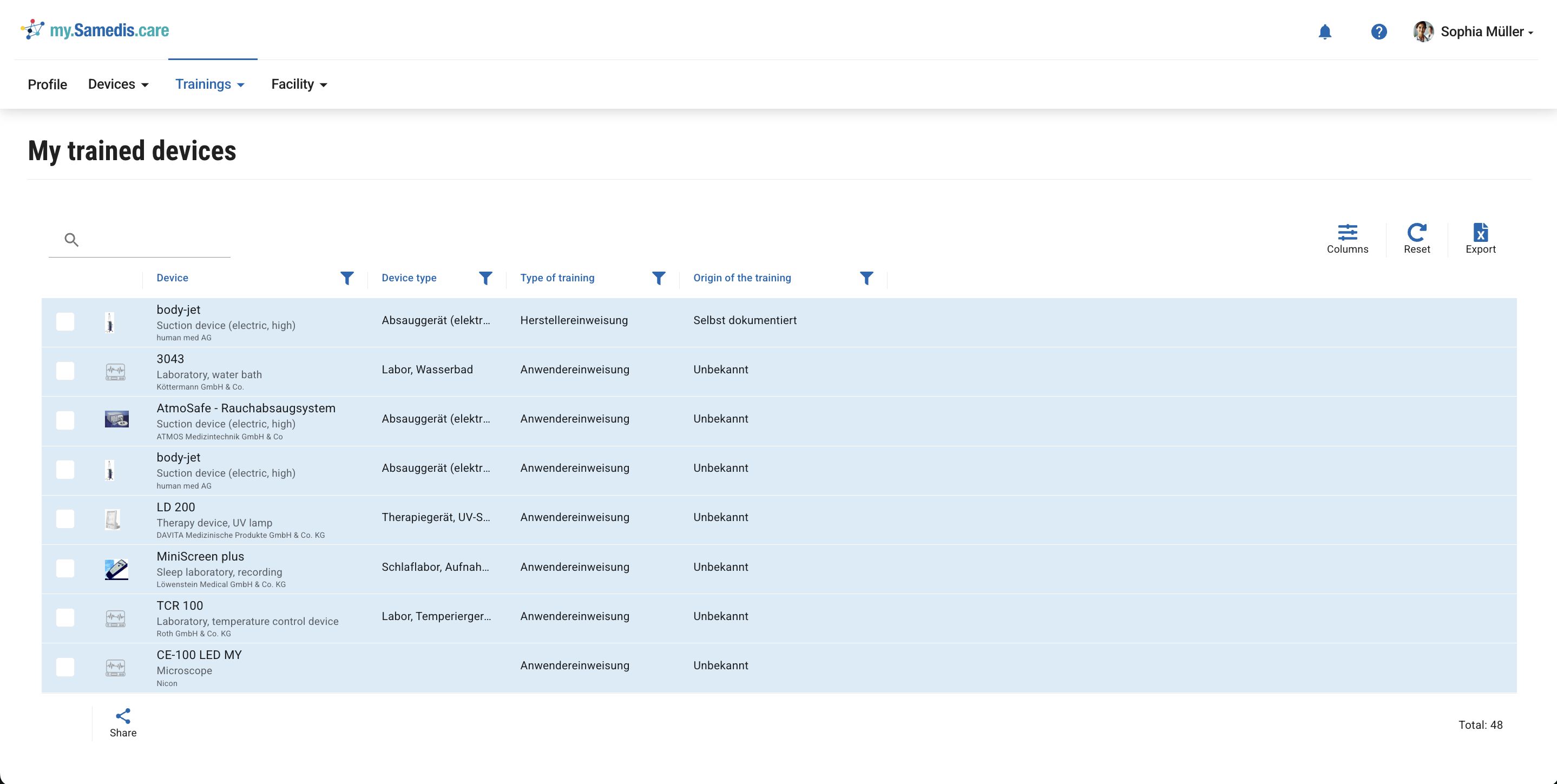 Samedis.care собирает все ваши документированные обучения в вашем личном профиле my.samedis.care.