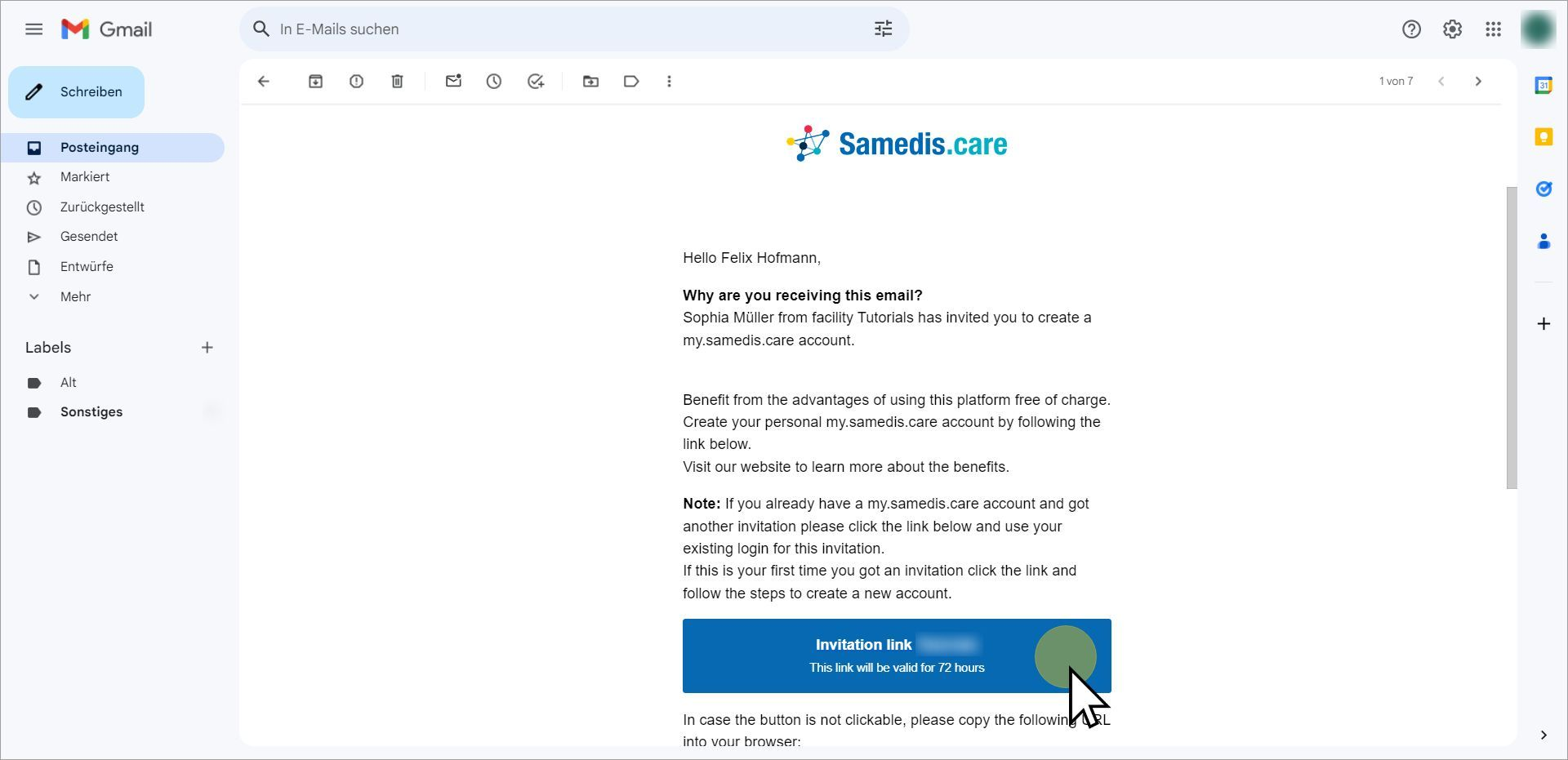 Попросите ответственное лицо в вашей новой организации пригласить вас в Samedis.care.