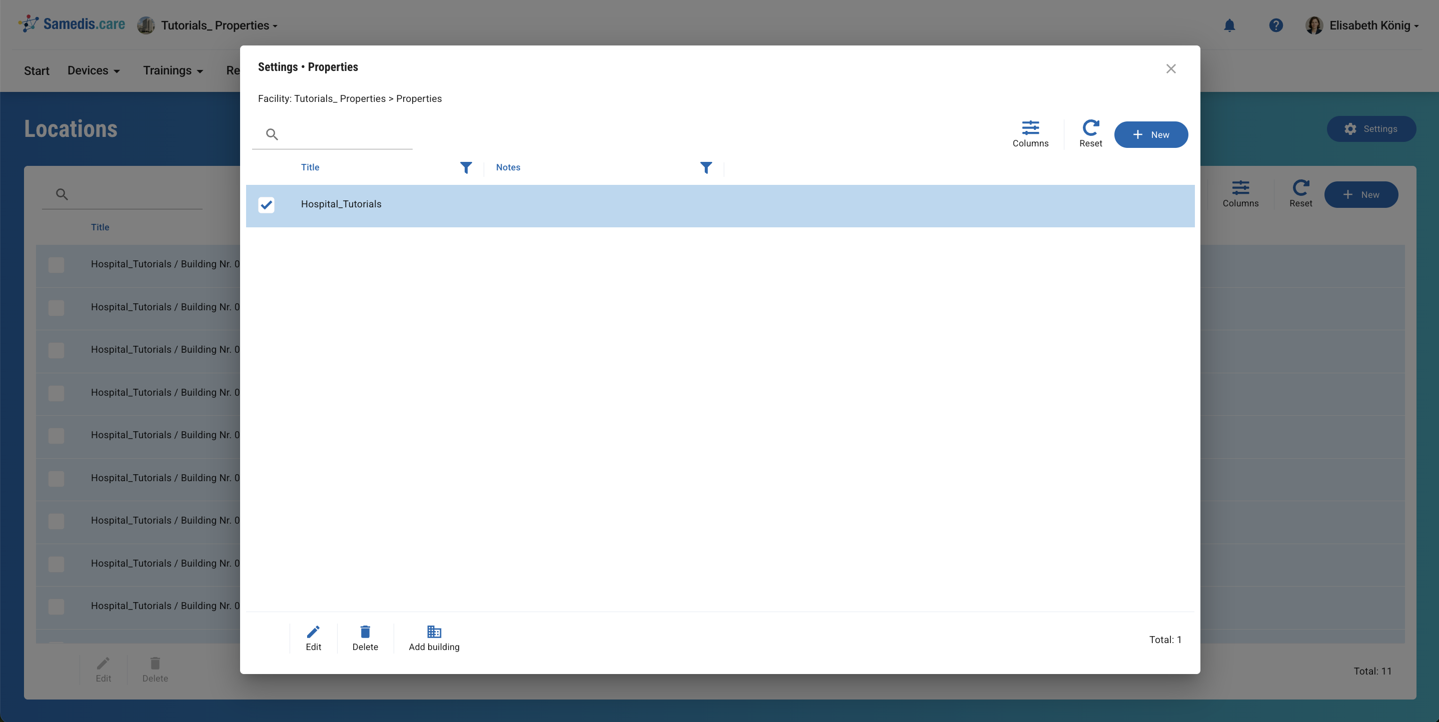 Чтобы добавить новое здание, нажмите + New.