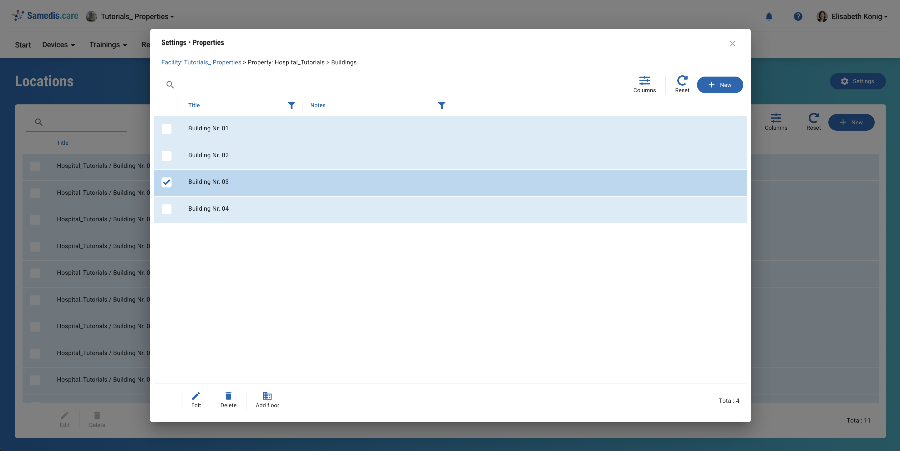 Если вы хотите просмотреть этажи здания, выберите его и нажмите Добавить этаж.
